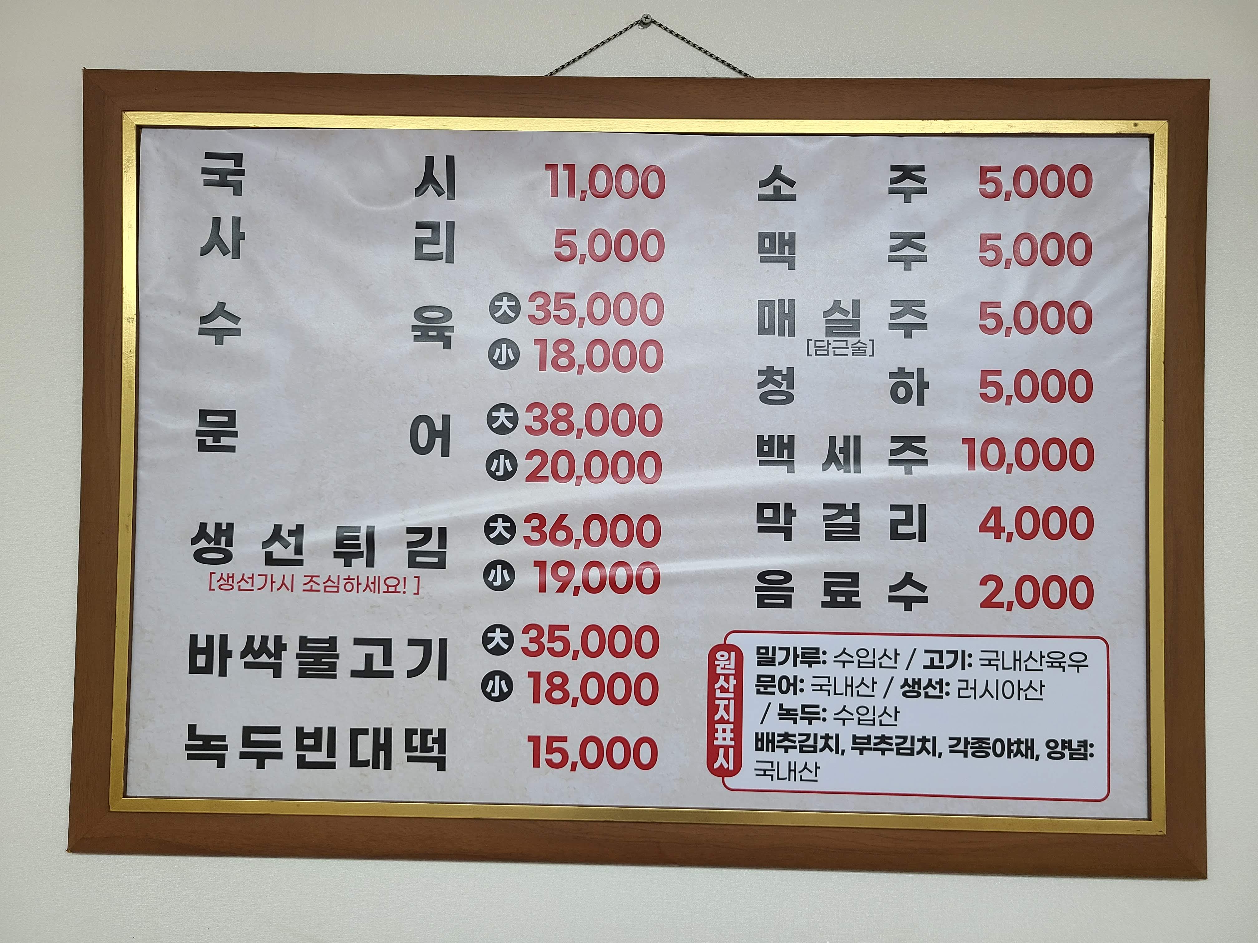메뉴판이고요.. 여기에서는 국시가 많이 나오기에 3명이 가면 국시 2개에 생선튀김을 주문합니다.
