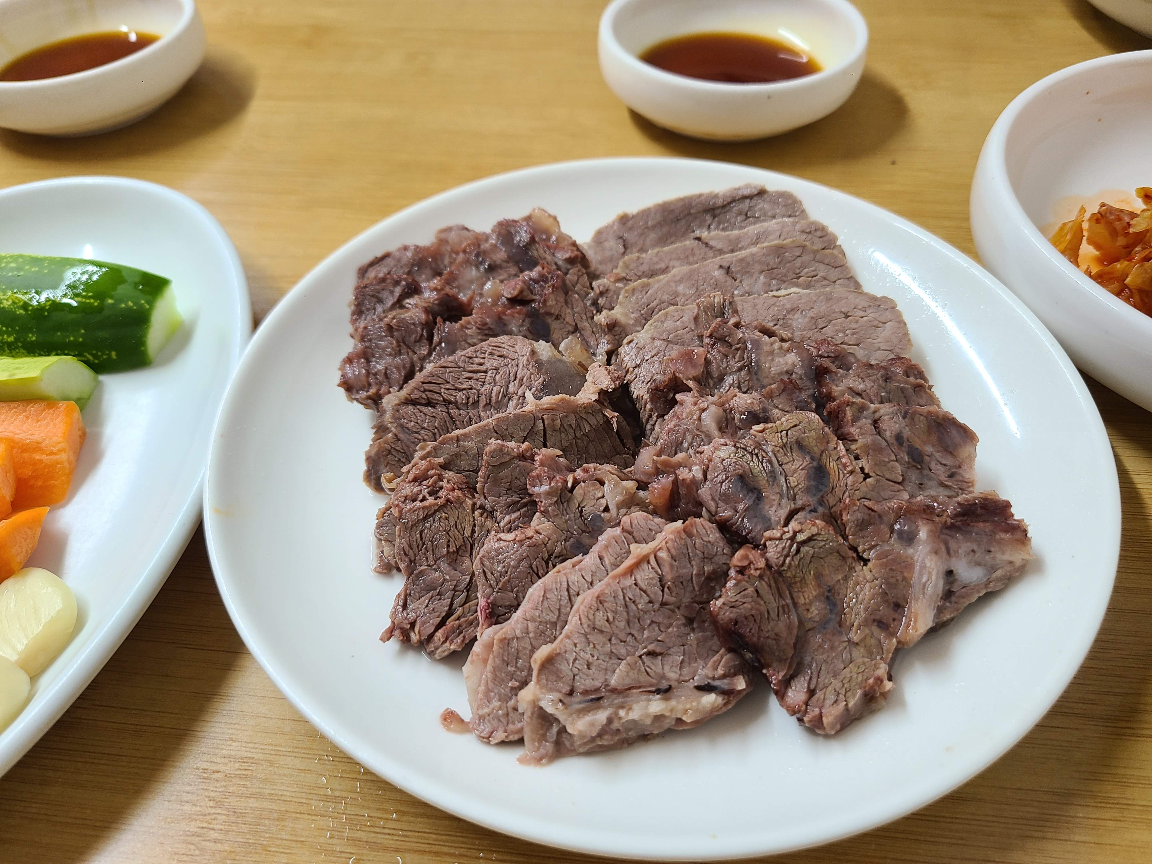 수육입니다. 수육은 맛이 있었습니다. 약간 퍽퍽한 살도 있었지만, 그것 말고는 모두 맛있었습니다.