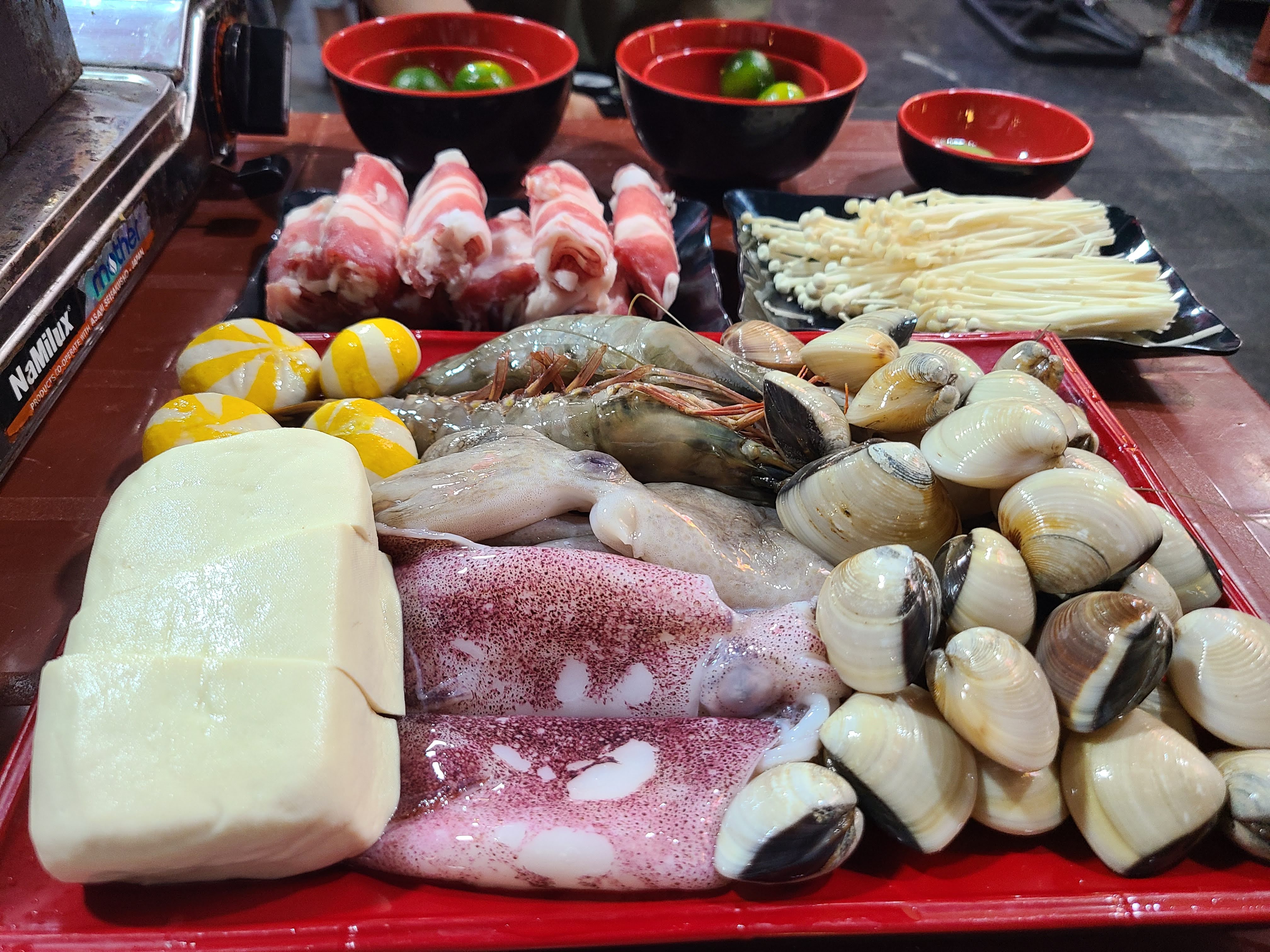 이런 육수에 먼저 배추부터 넣고 함께 나온 해산물을 넣고 먹으면 됩니다.