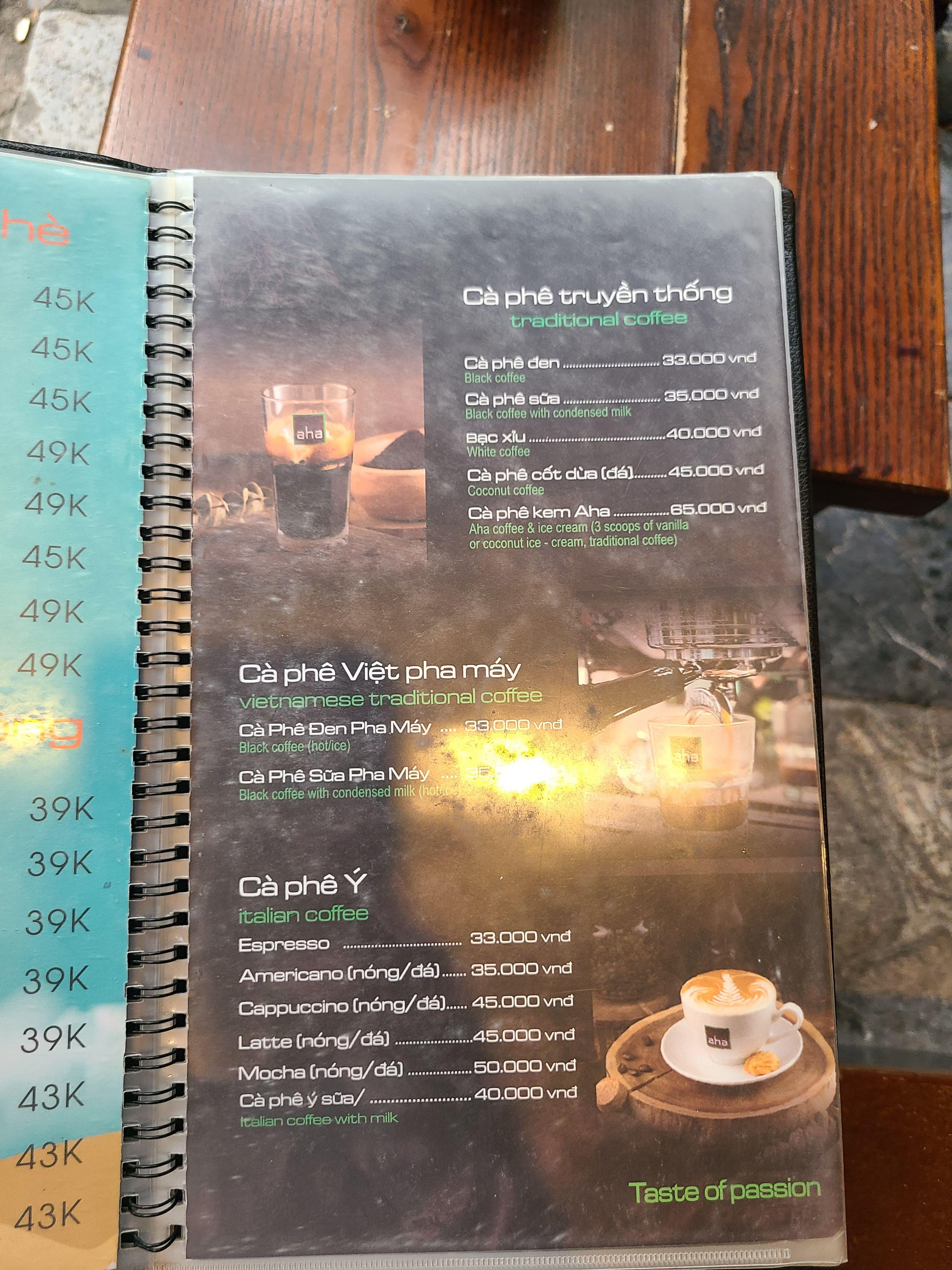 그리고 지금 메뉴판을 보니 Ca Phe Kem Aha가 있네요. 이것을 먹을 것을...ㅜㅜ