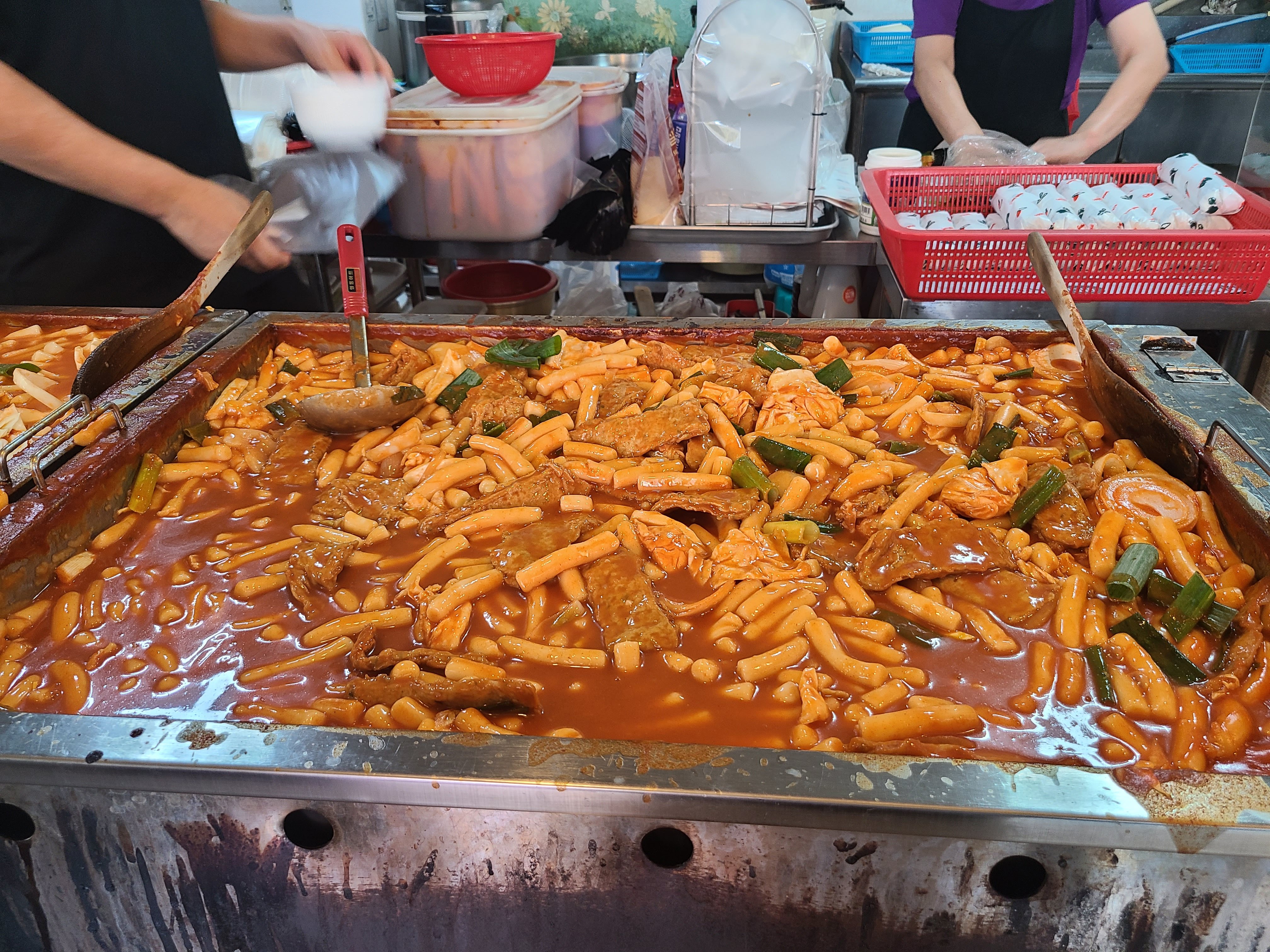 오뎅도 팔고 있지만.. 저는 떡볶이와 김밥을 사 먹습니다.