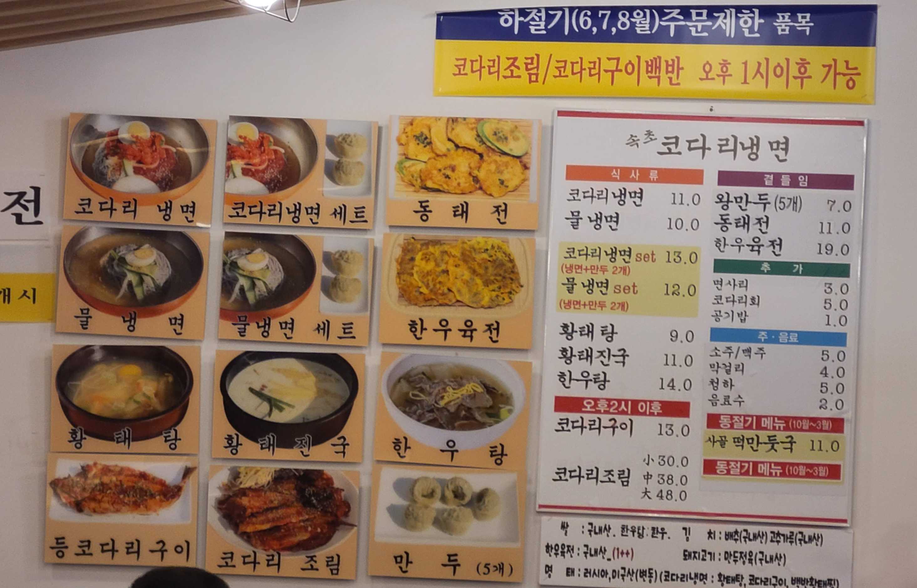 친한 몇 분이 가셔서 황태탕, 코다리 냉면 그리고 만두를 함께 나누어 먹으면 좋을 것 같네요.
