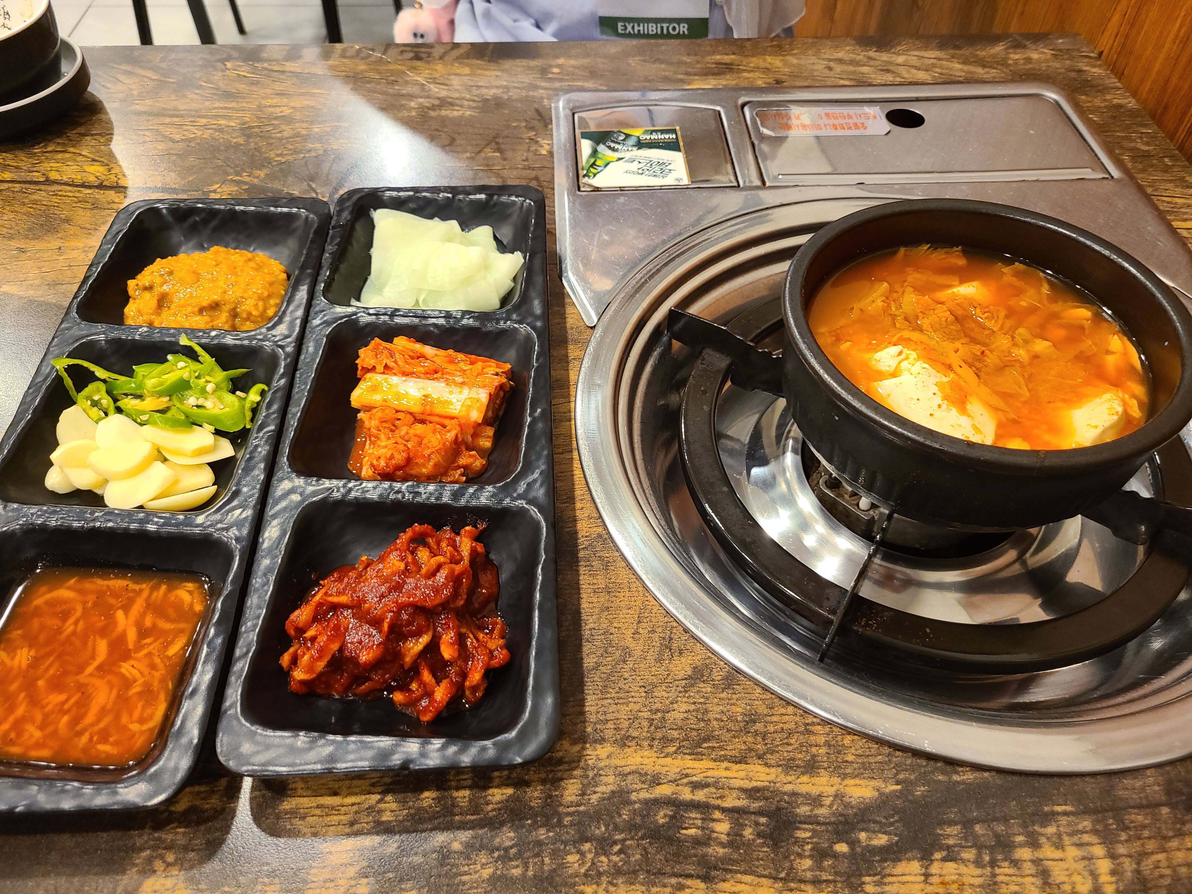 미리 세팅된 것입니다. 두부김치찌개 있습니다. 김치 찌개는 그럭저럭입니다.