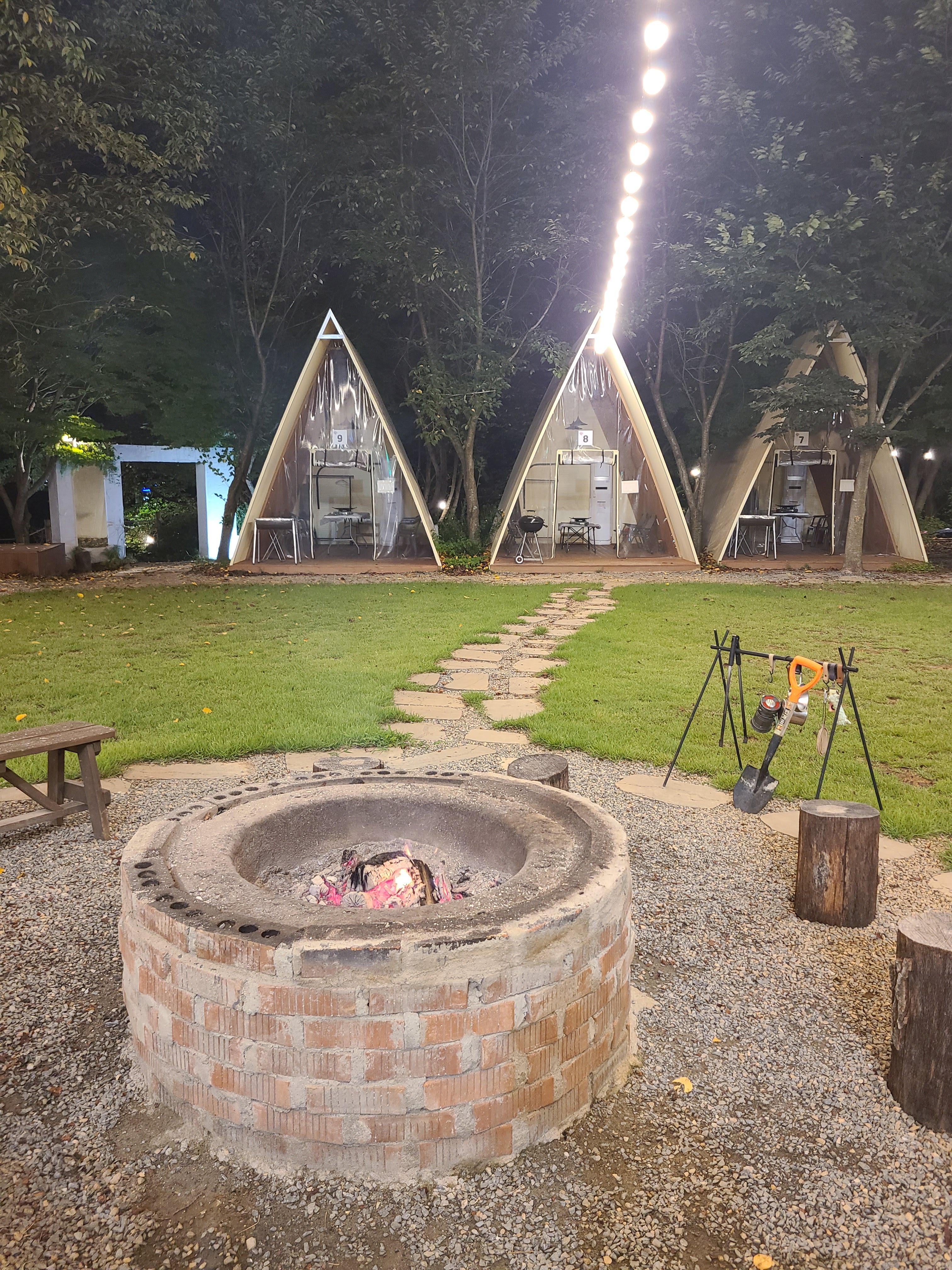 정리도 캠핑 온 것 같이 알아서 정리해야 합니다. 내 돈 내고 세팅과 정리를 한다는 것이 조금은 이상하지만.. 캠핑이라는 기분을 느낄 수 있었습니다. 특히 어두워지면 캠핑에서 빠질 수 없는 캠프파이어를 해줍니다.