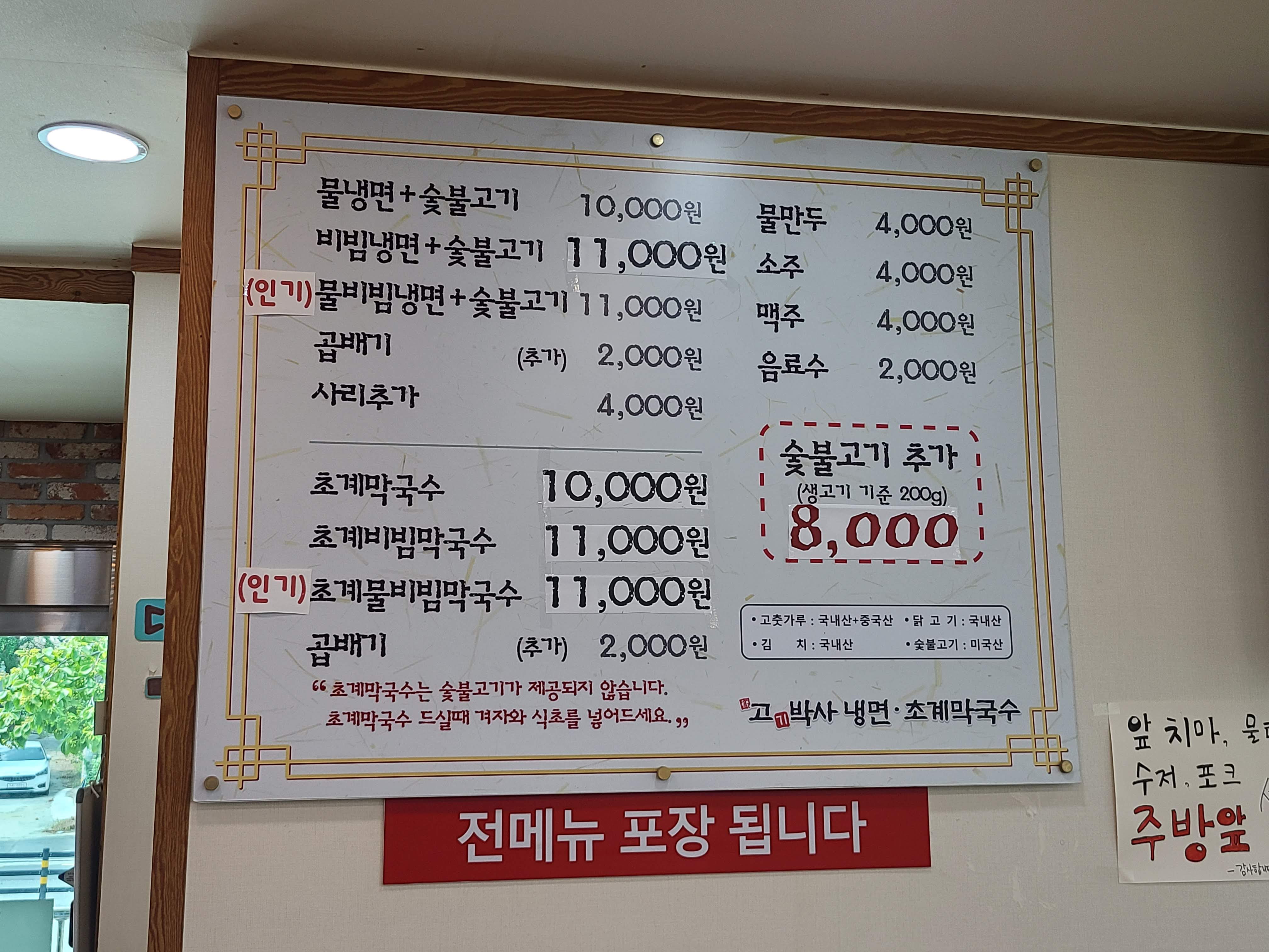 저번에 업로드한 북대전 IC 진입하는 근처에 있는 고박사냉면 입니다.
