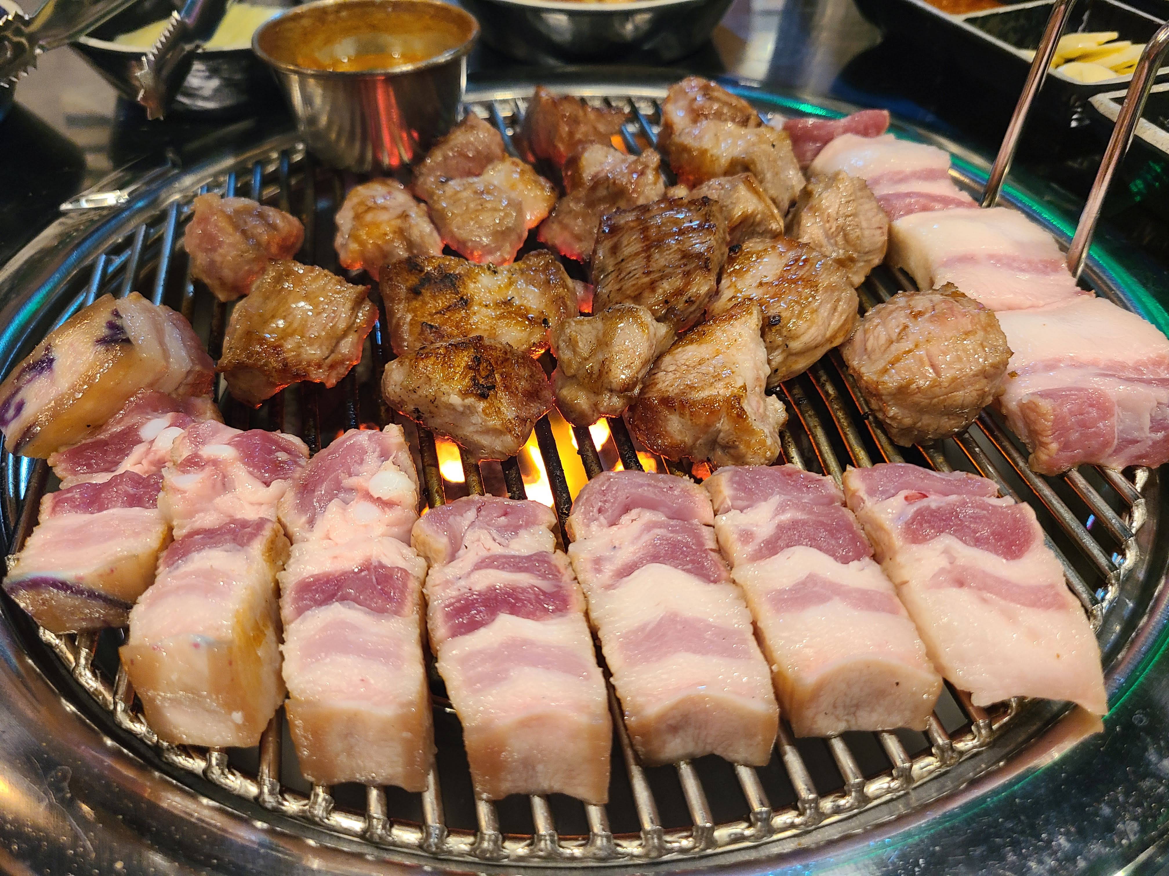 비계 듬뿍 오겹살도 좋았어요. 구워 먹으니 비계의 맛이 아닌 고기 특유의 맛이 있었습니다.