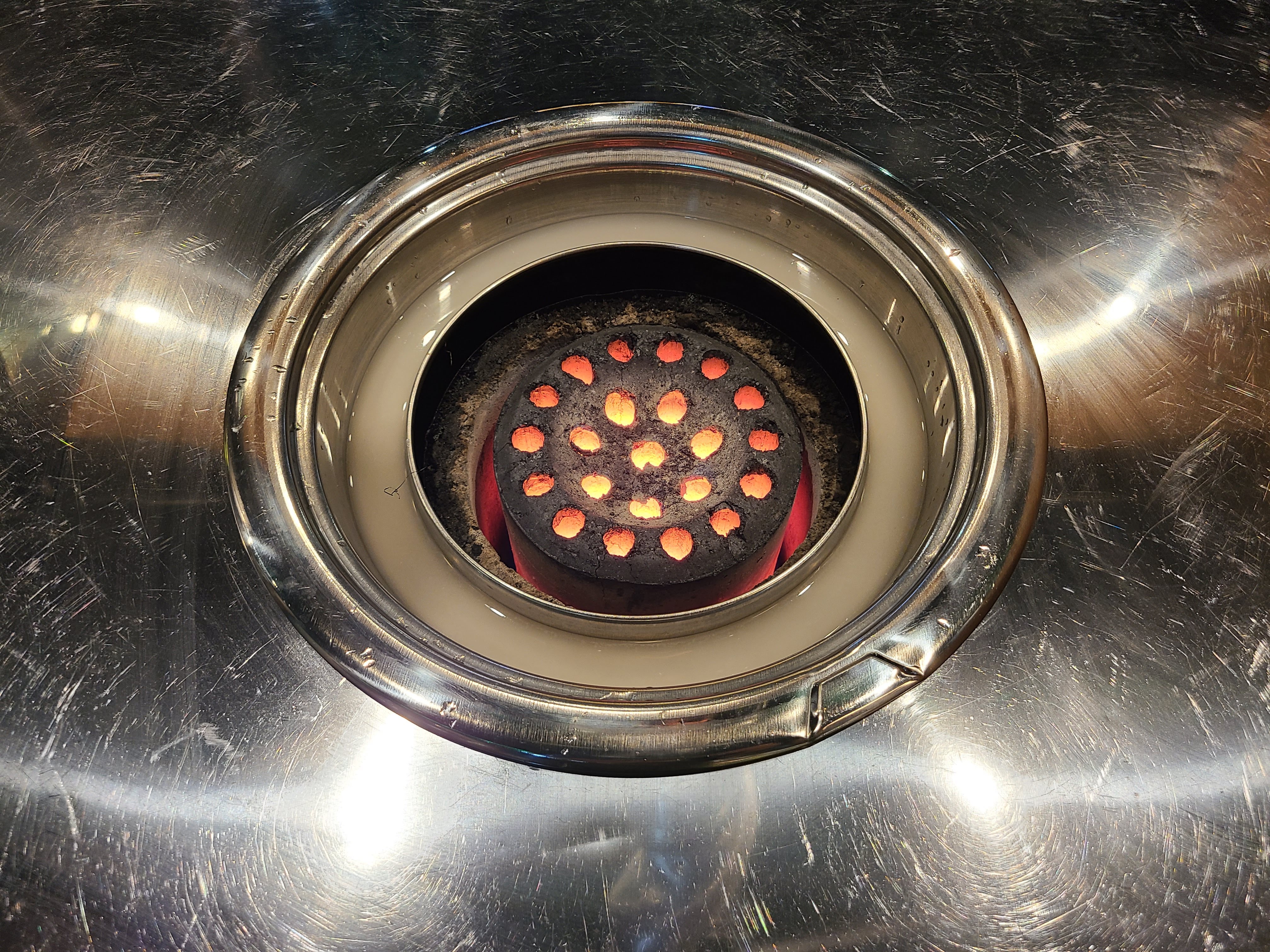연탄불에 구워 먹습니다. 안 맛있을 수 없겠죠..