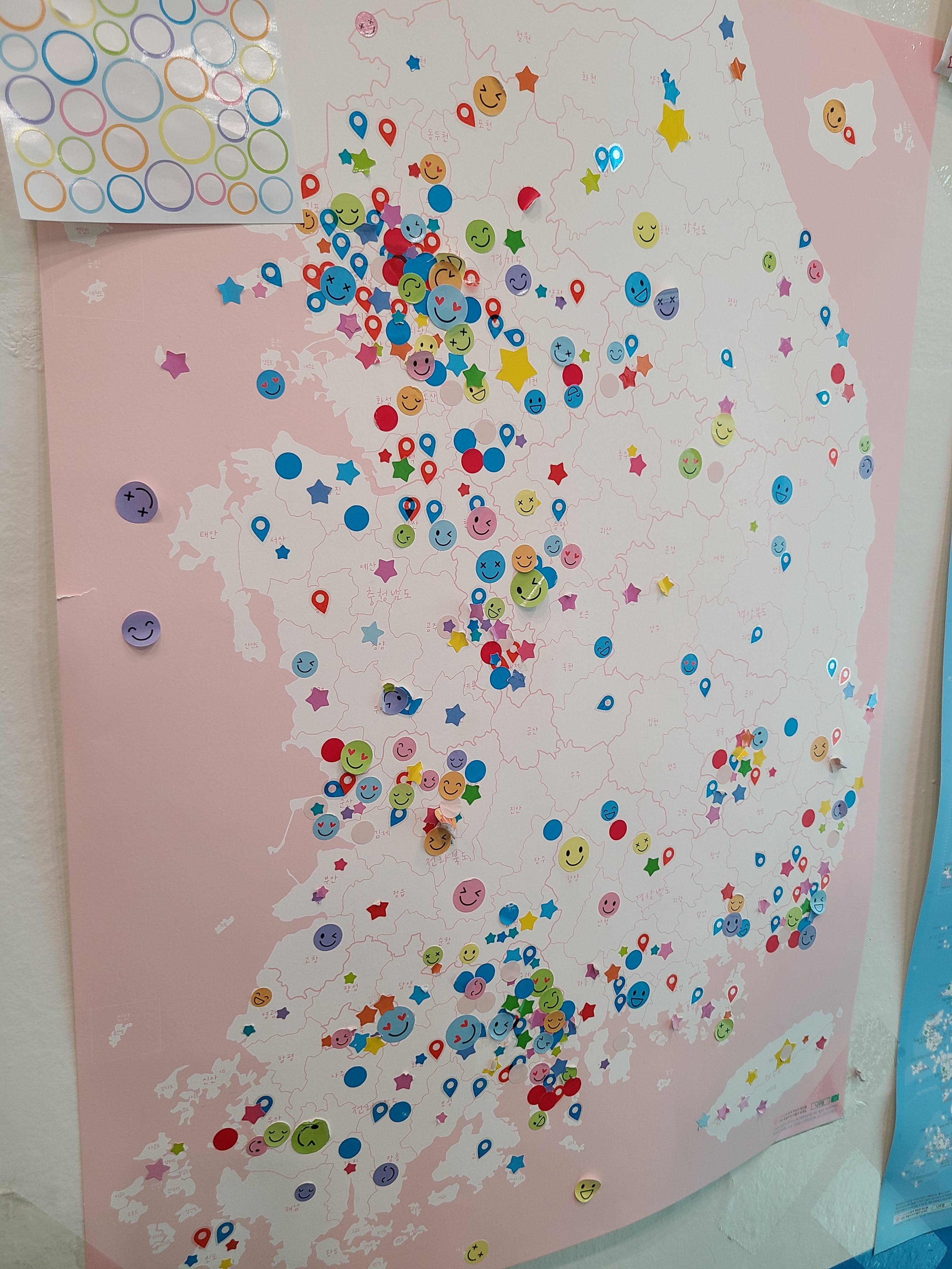 안에 들어가면 지도가 있어요. 지도를 보면 이곳에 얼마나 많은 분들이 오는지 아실거에요.
