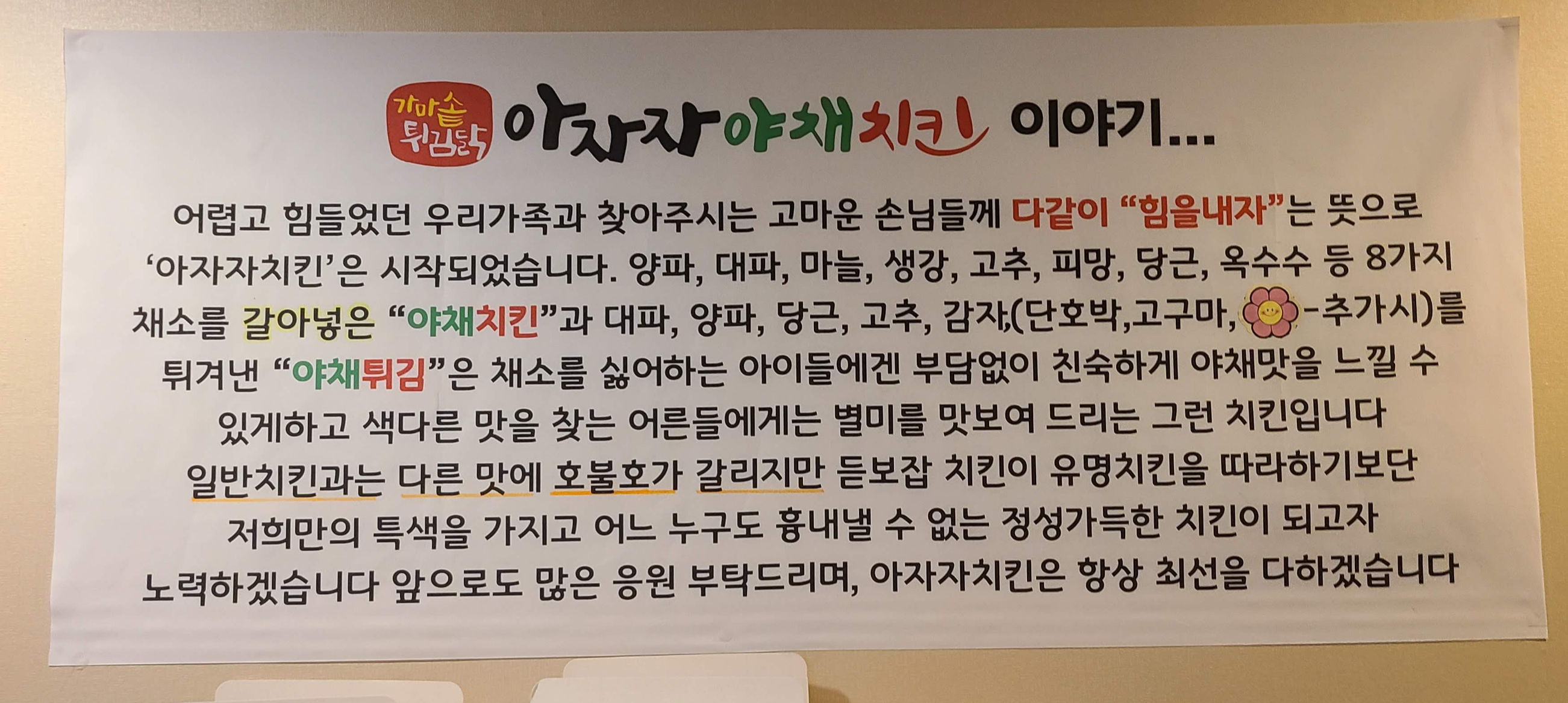 대전 월평동에 있는 아자자야채치킨입니다.