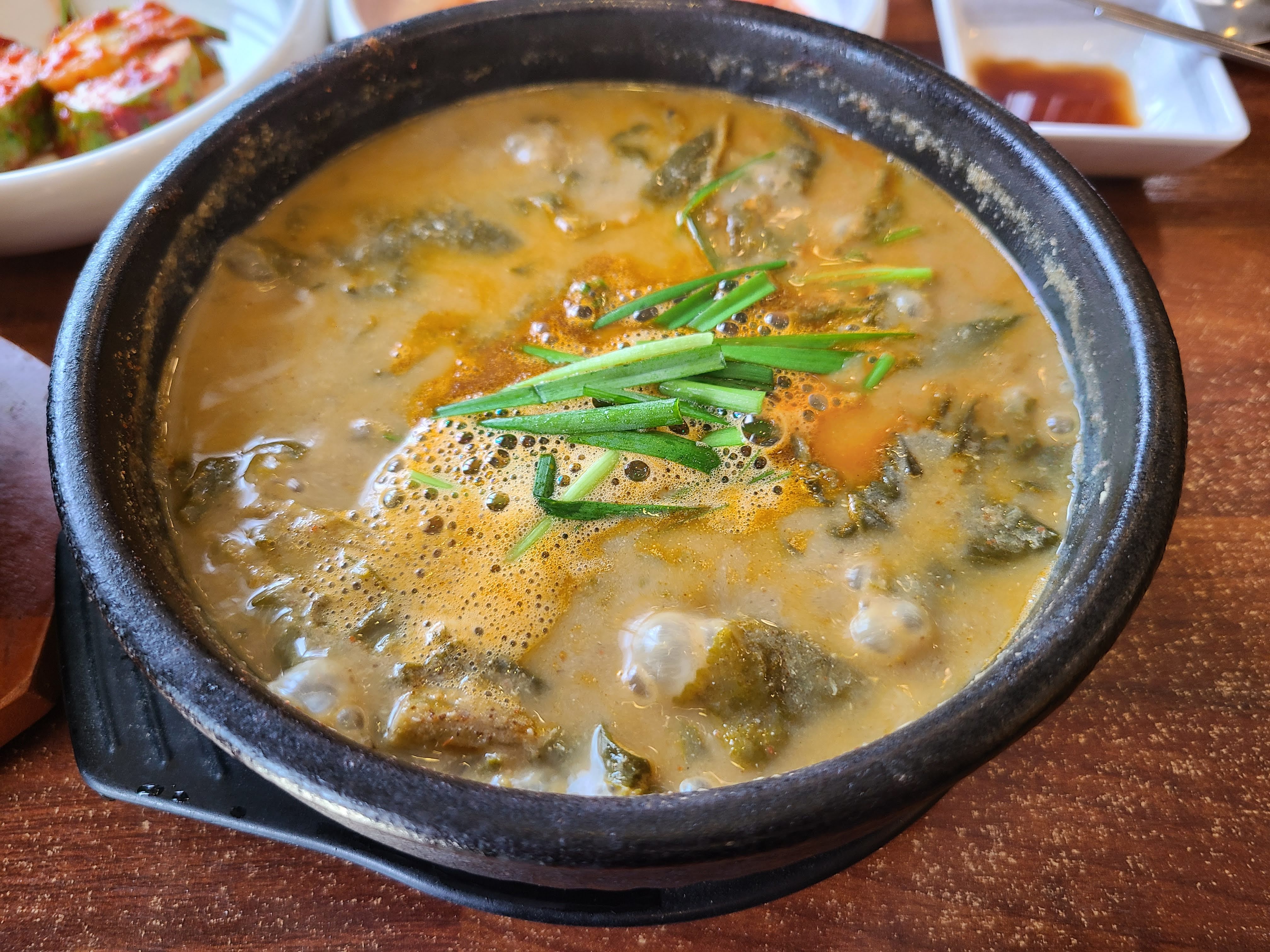 시래기가 많이 들어 있어서 푸짐합니다. 그리고 국물도 진합니다. 여기에 밥을 말아서 함께 먹으면 계속 먹을수록 밥알 알갱이 알갱이마다 국물이 배어서 더 진하게 먹을 수 있습니다.