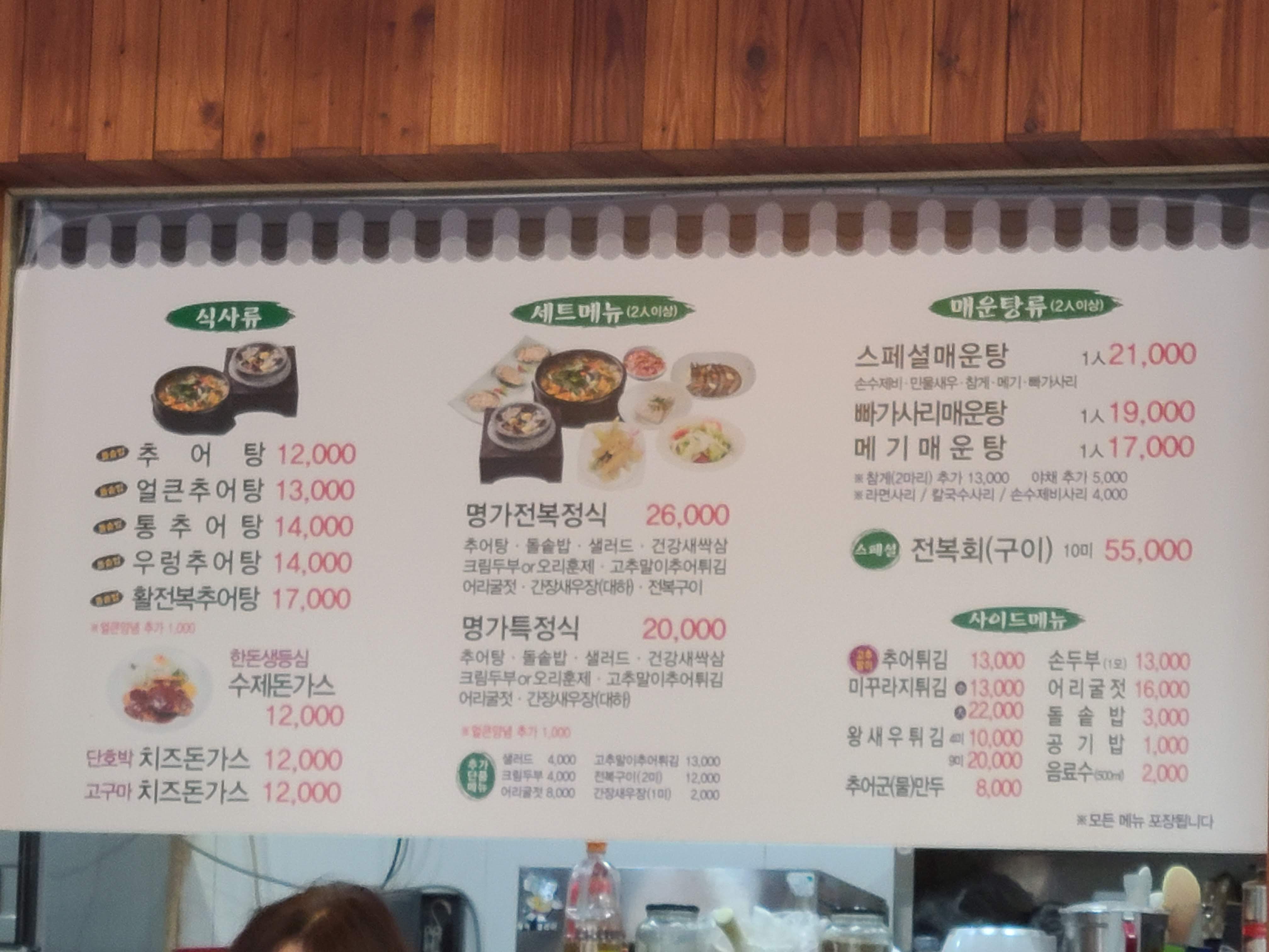 가격입니다. 아주 비싼것은 아니지만 그래도 가격이 조금 되네요. 활전복추어탕을 드시는 분들도 많이 있었네요.