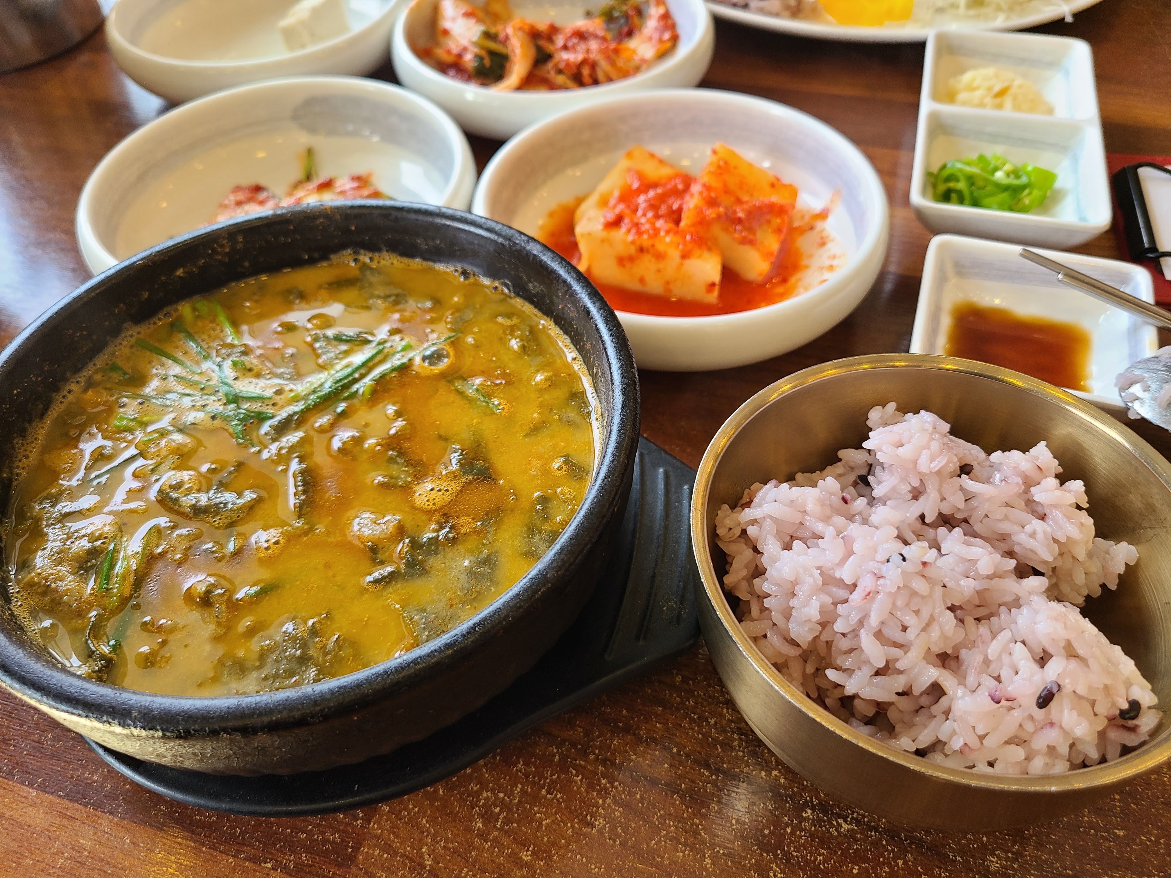 시래기가 많이 들어 있어서 푸짐합니다. 그리고 국물도 진합니다. 여기에 밥을 말아서 함께 먹으면 계속 먹을수록 밥알 알갱이 알갱이마다 국물이 배어서 더 진하게 먹을 수 있습니다.