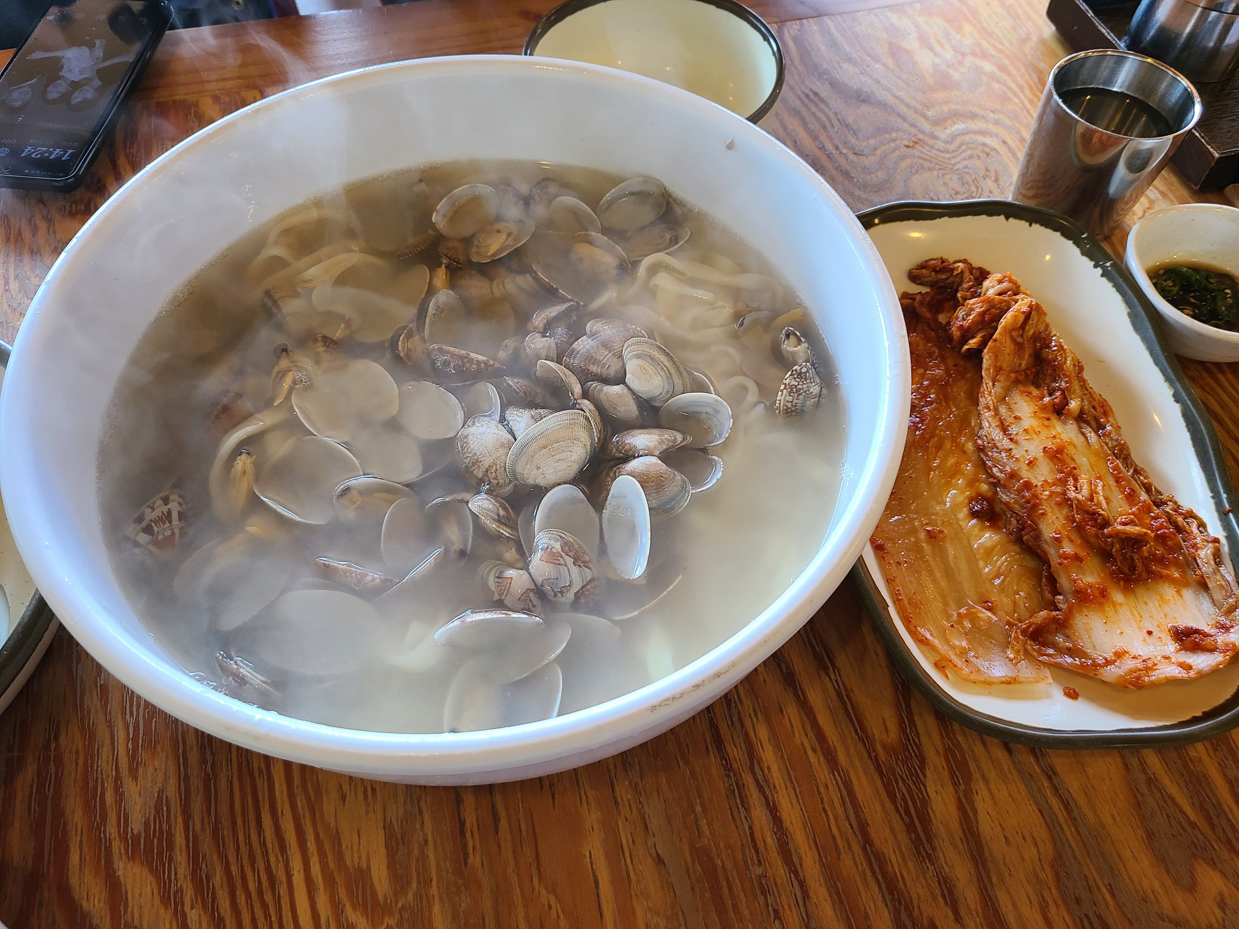 바지락 국물로 맛이 깔끔합니다. 맛이 깔끔하기에 묵은지도 은근히 잘 어울리는 것 같네요.