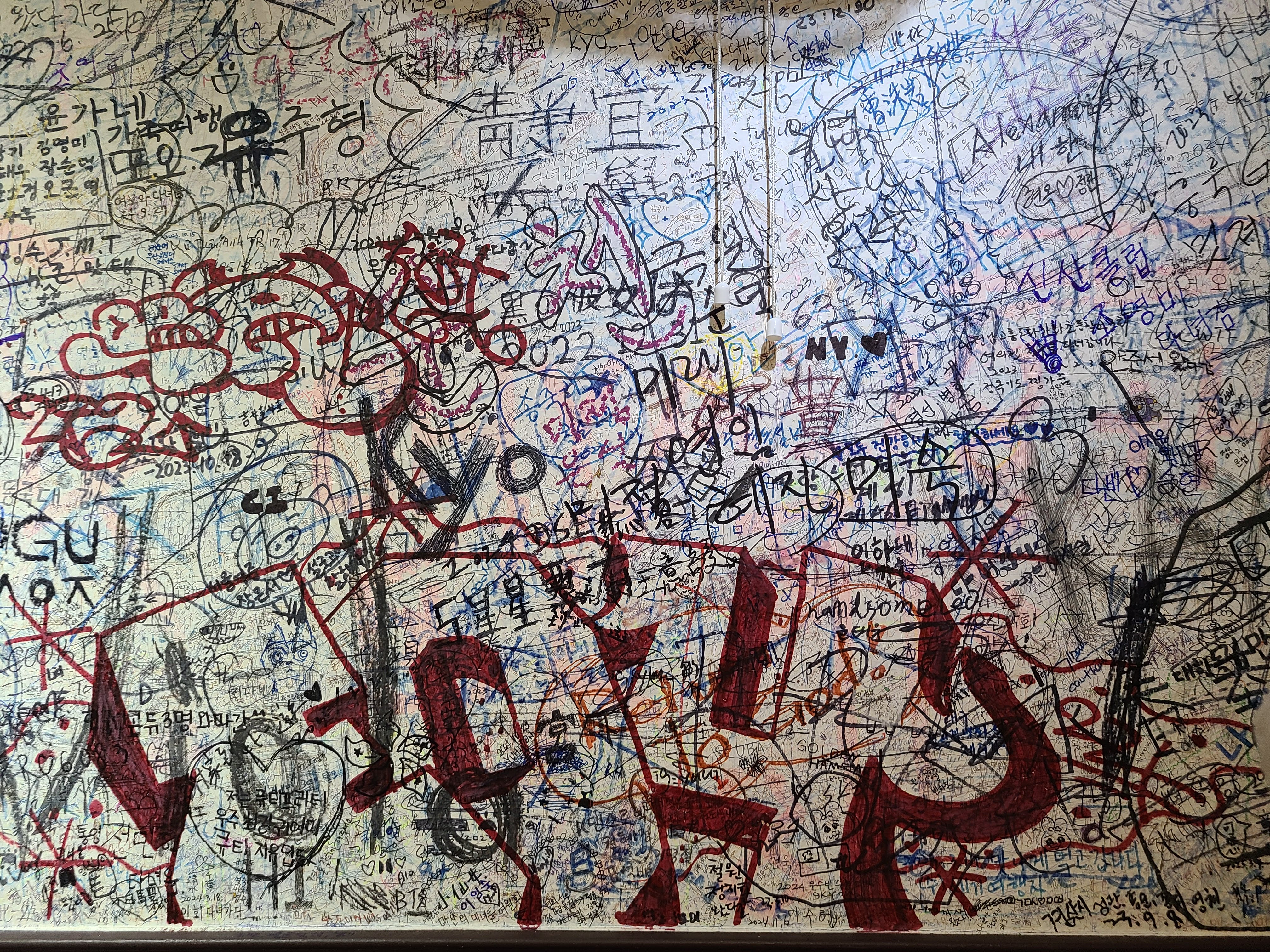 지하에는 정겨운 한글 낙서가 가득합니다.. 여기에 왔다는 영역표시(?) 하나 하시고 빙수를 시켜 드심이 ...
