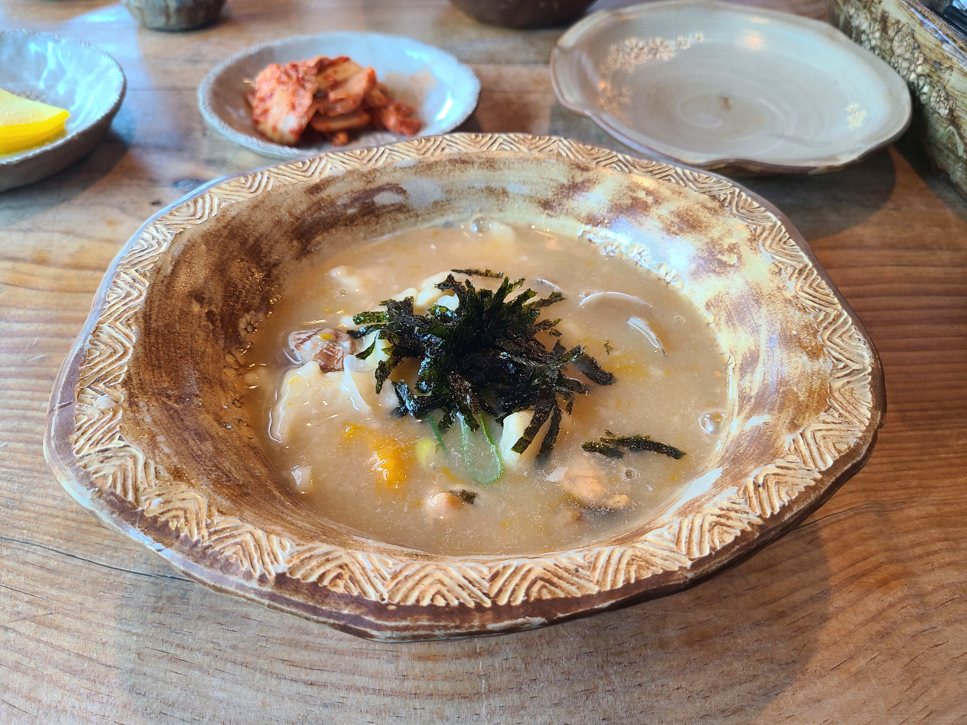 조개와 호박등이 들어 있고 국물은 찐했습니다. 조금 더 다른 표현을 하자면 걸쭉했습니다.