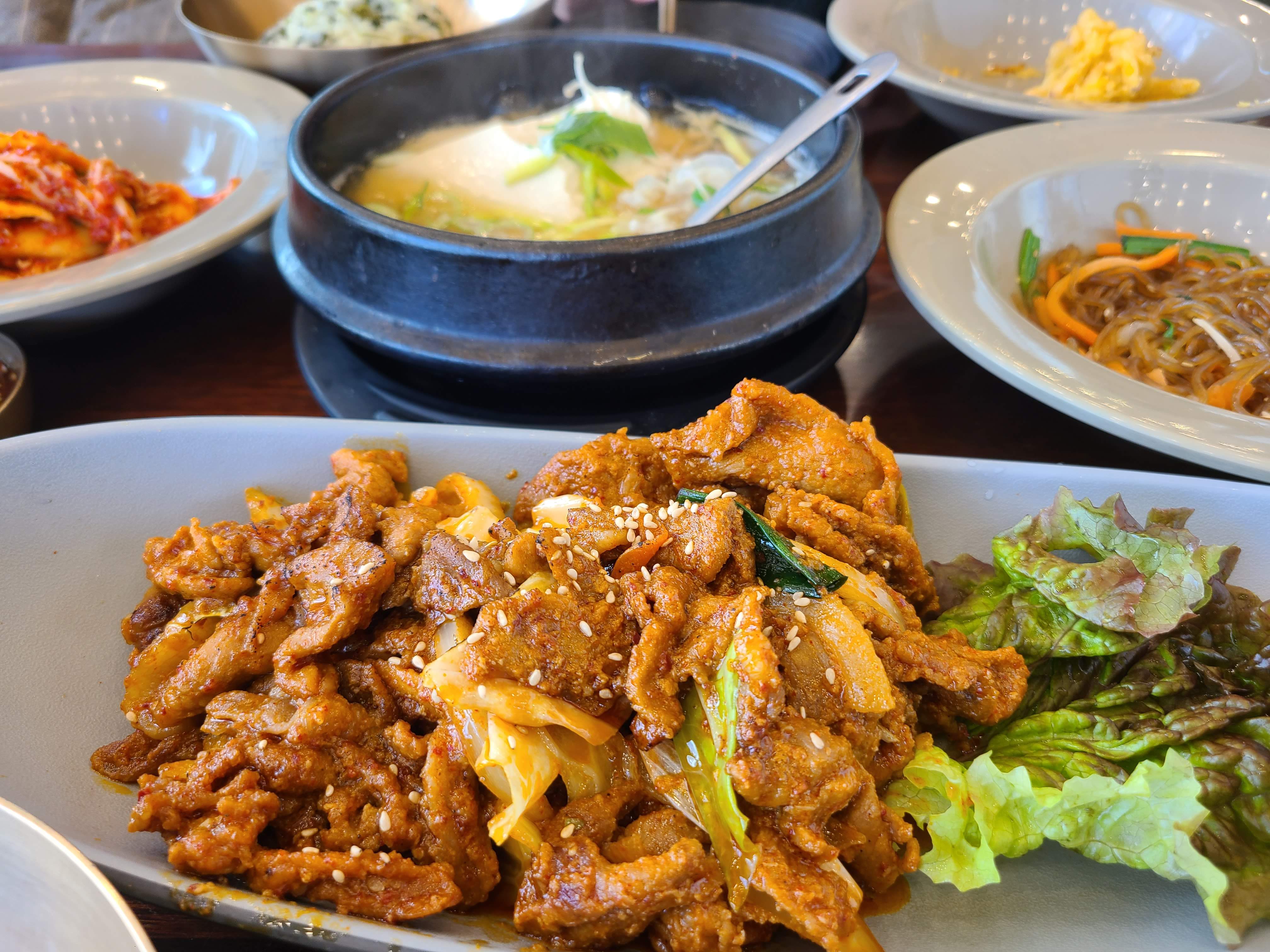 제육은 정직한 제육입니다. 적당한 비계가 있고 양념이 잘되어 있습니다.