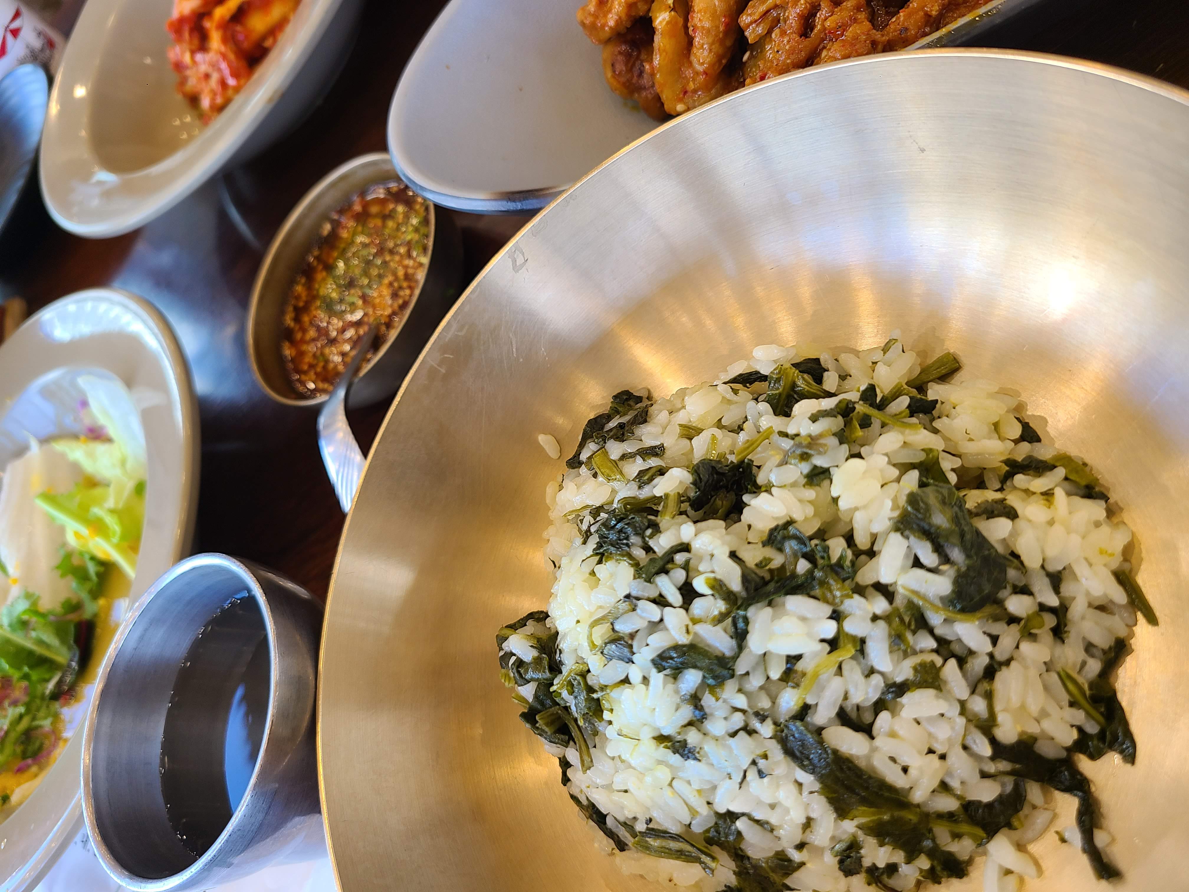 조금 먹다가 함께 나온 장에 비벼 먹었습니다. 달래(?)향이 가득한 장입니다. 맛있어요.