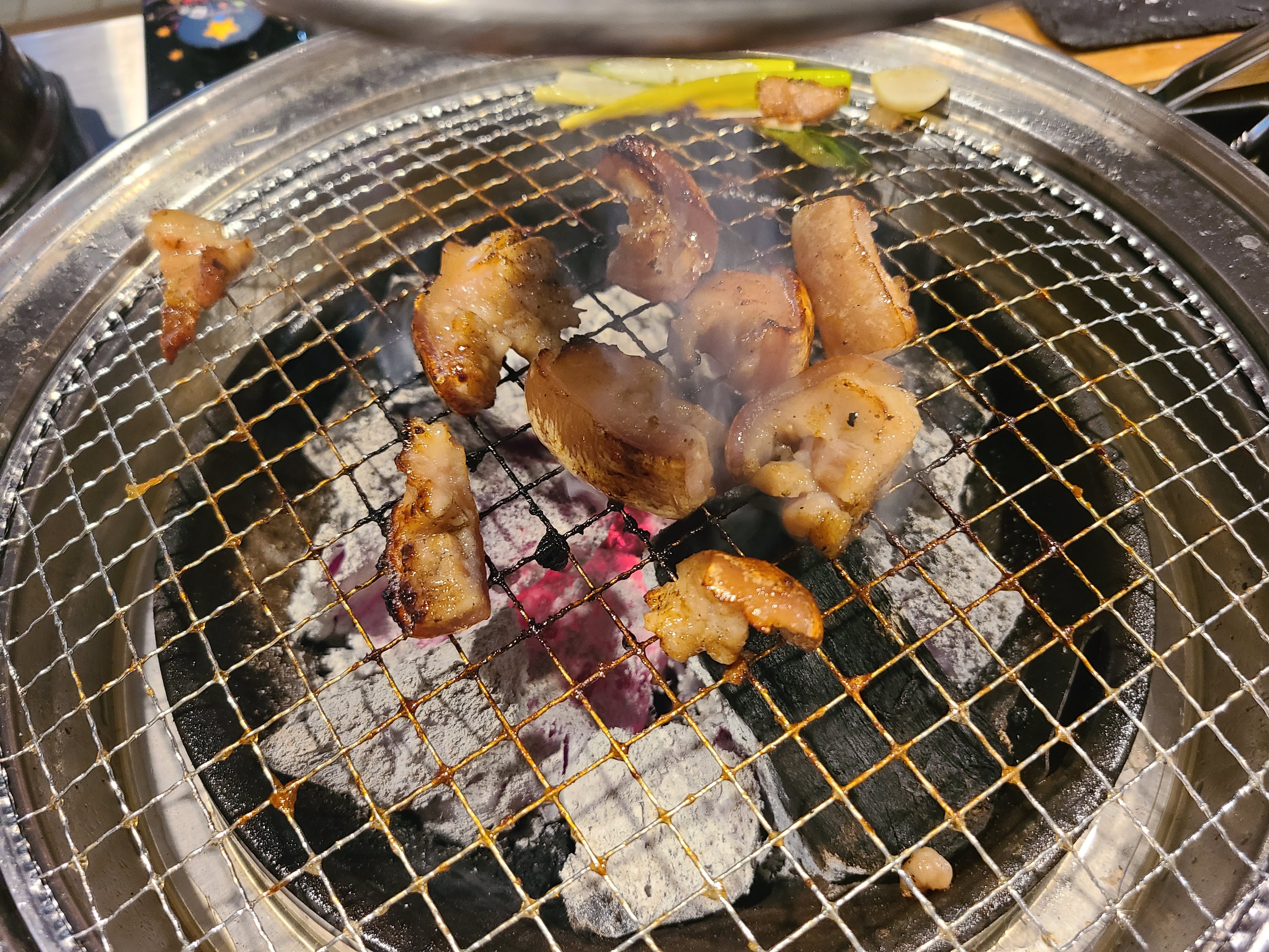 사진으로 찍은 것보다 진짜로 고기는 더 맛있게 보이고 거기에 고기 굽는 향이 함께 하기에 ... 한마디로 끝내 줍니다.