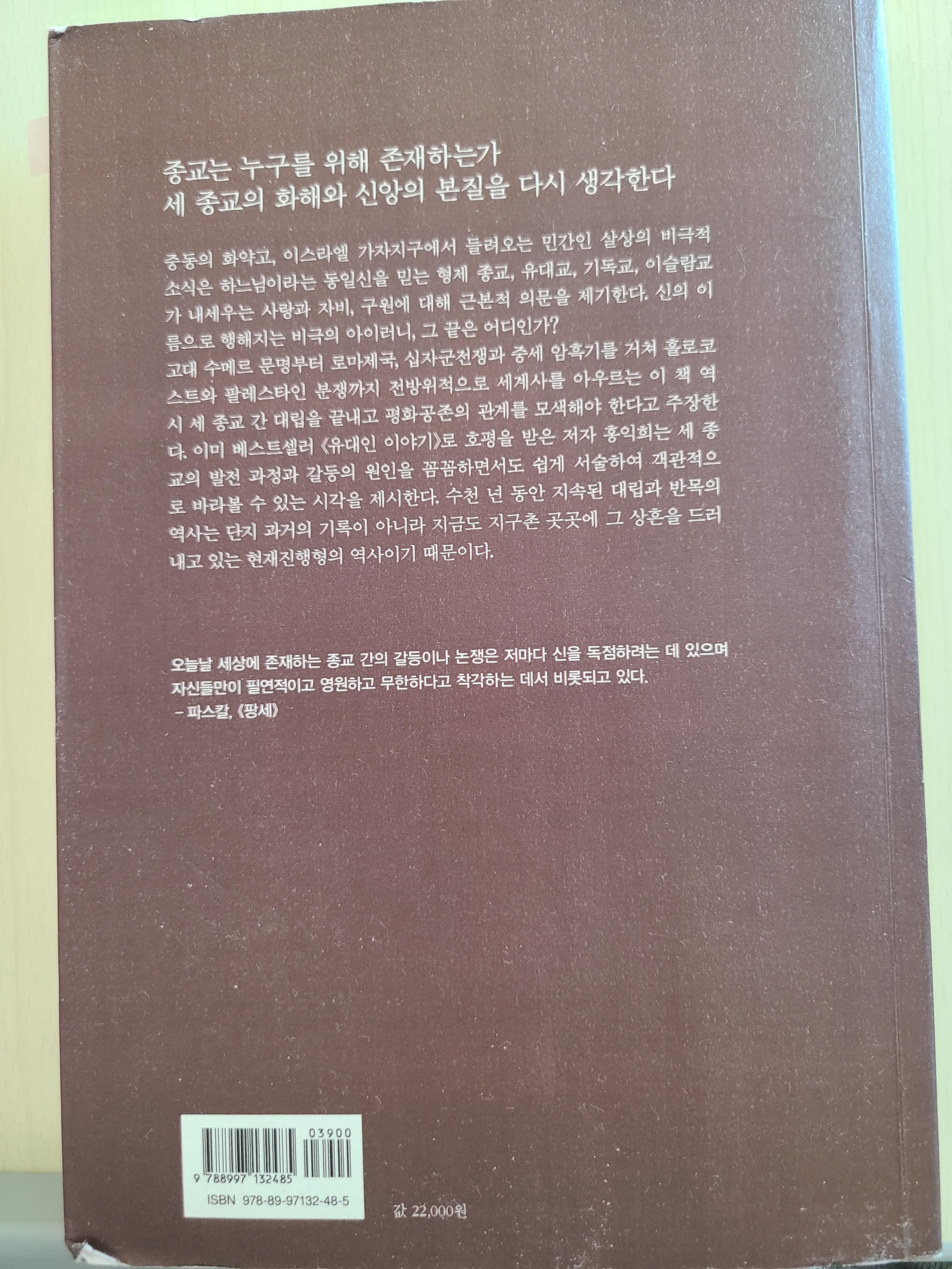 무엇보다 다 읽고 나면 세 종교에 대해서 조금은 아쉽고 그리고 묵직함이 마음에 남는 것 같습니다.