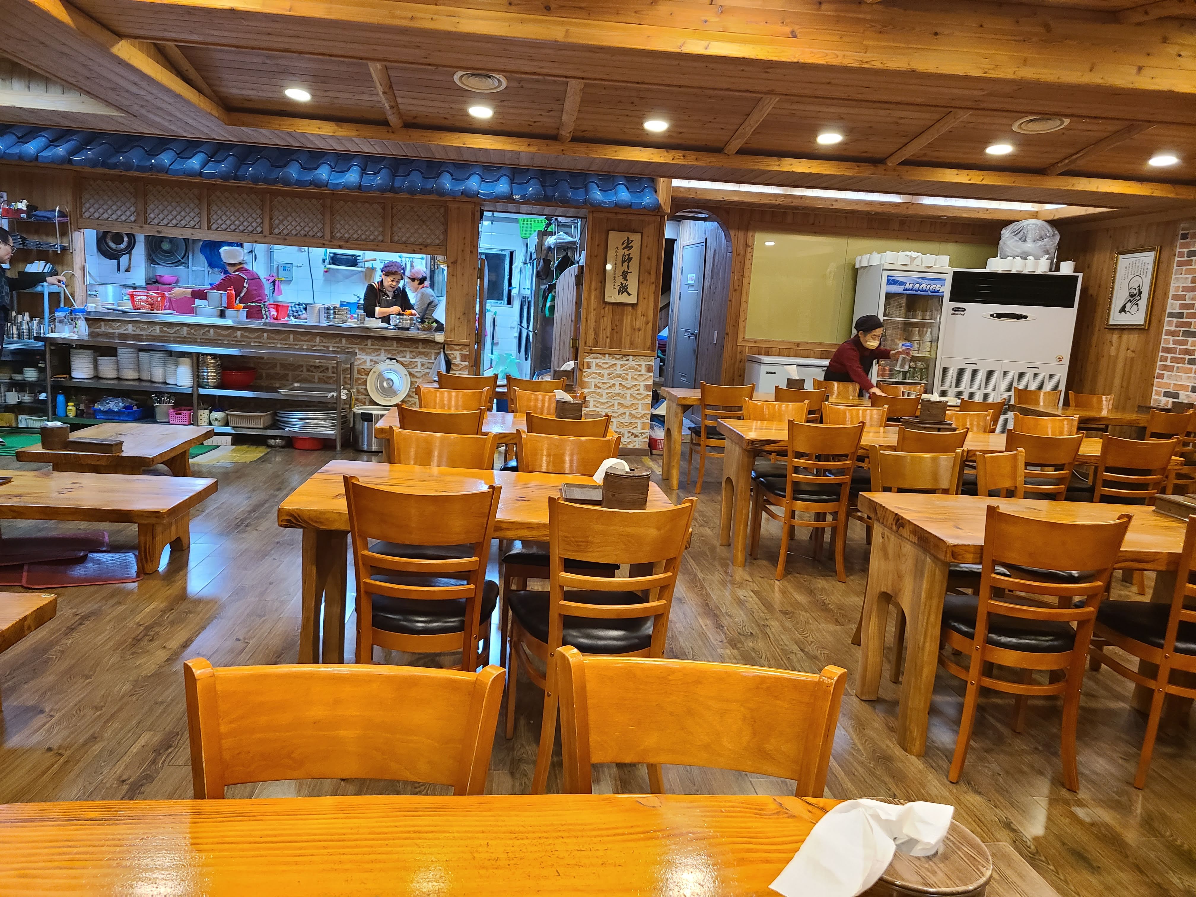 안에 사람들이 많이 없죠..  천만에요.. 제가 간 시간은 토요일 오후 6시 40분 정도 였습니다.  사람이 많았습니다. 그리고 제가 자리에 앉고 난 다음에 3팀 정도가 자리가 나기를 기다렸습니다. 그래도 그 3팀은 다행이었어요. 식재료가 없어도 그 다음부터 오신 분들은 발길을 돌려야 했습니다.. 게임에서 이긴 기분..  칼국수를 먹기 전 부터 좋은 기분이네요.