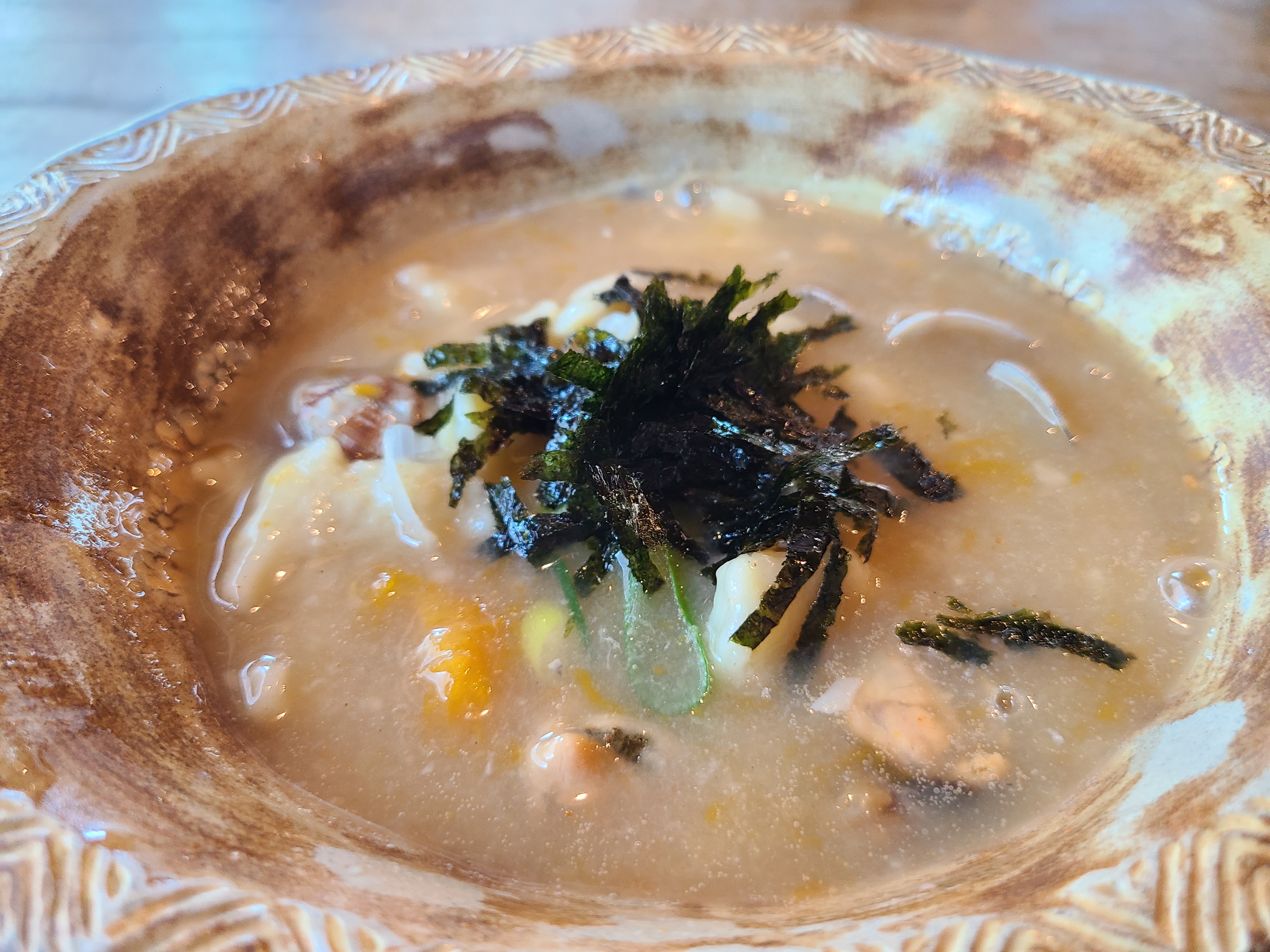 조개와 호박등이 들어 있고 국물은 찐했습니다. 조금 더 다른 표현을 하자면 걸쭉했습니다.