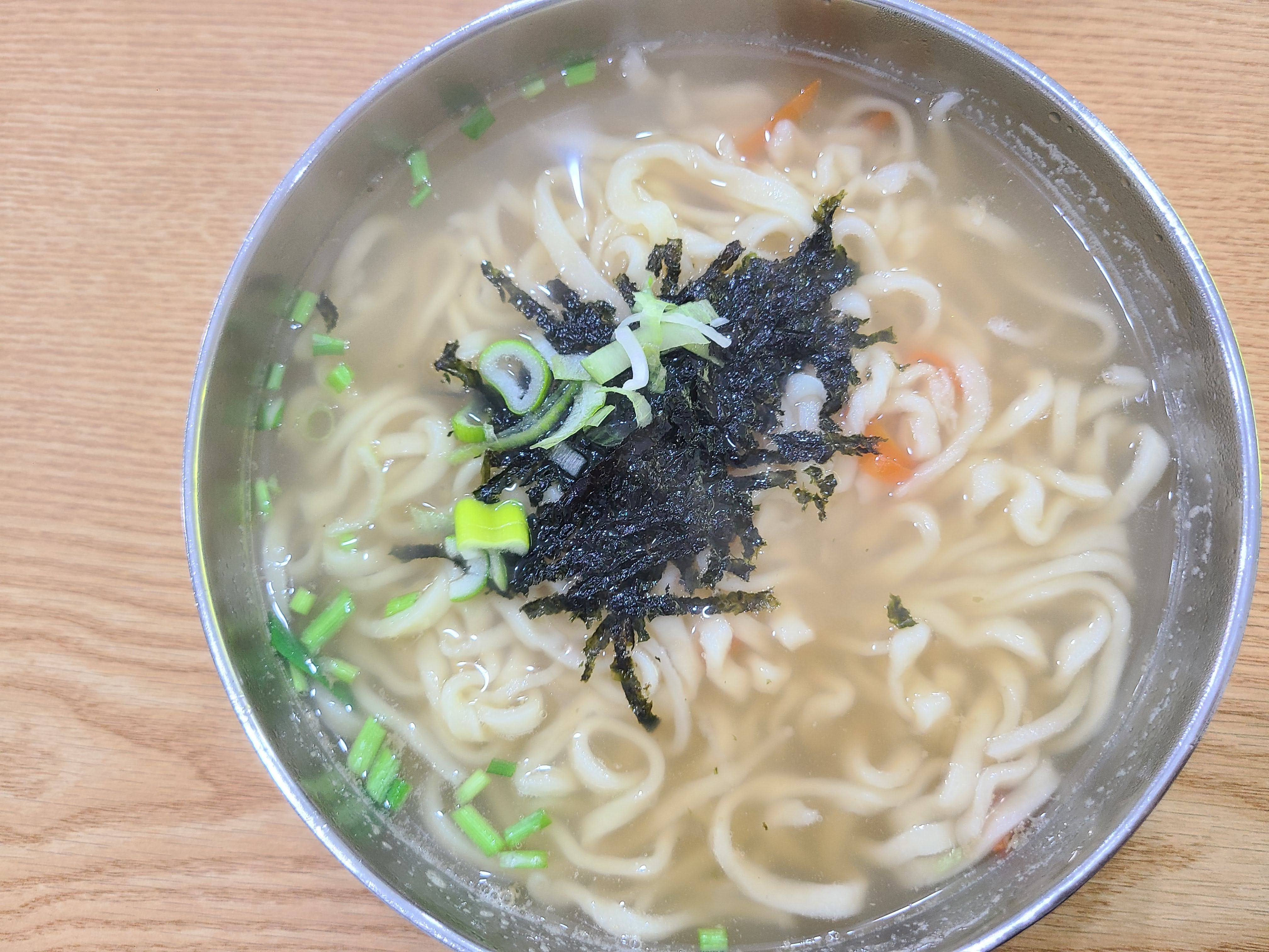수제비와 칼국수 입니다. 면은 꼬들꼬들 하다고 해야하나.. 뭐라고 표현을 못하겠는데..  입안에서 식감을 느낄 수 있는 적당한 통통함이 있습니다. 국물은 전혀 자극적이지 않고 부드럽습니다.  부드러운 안성탕면의 면발...