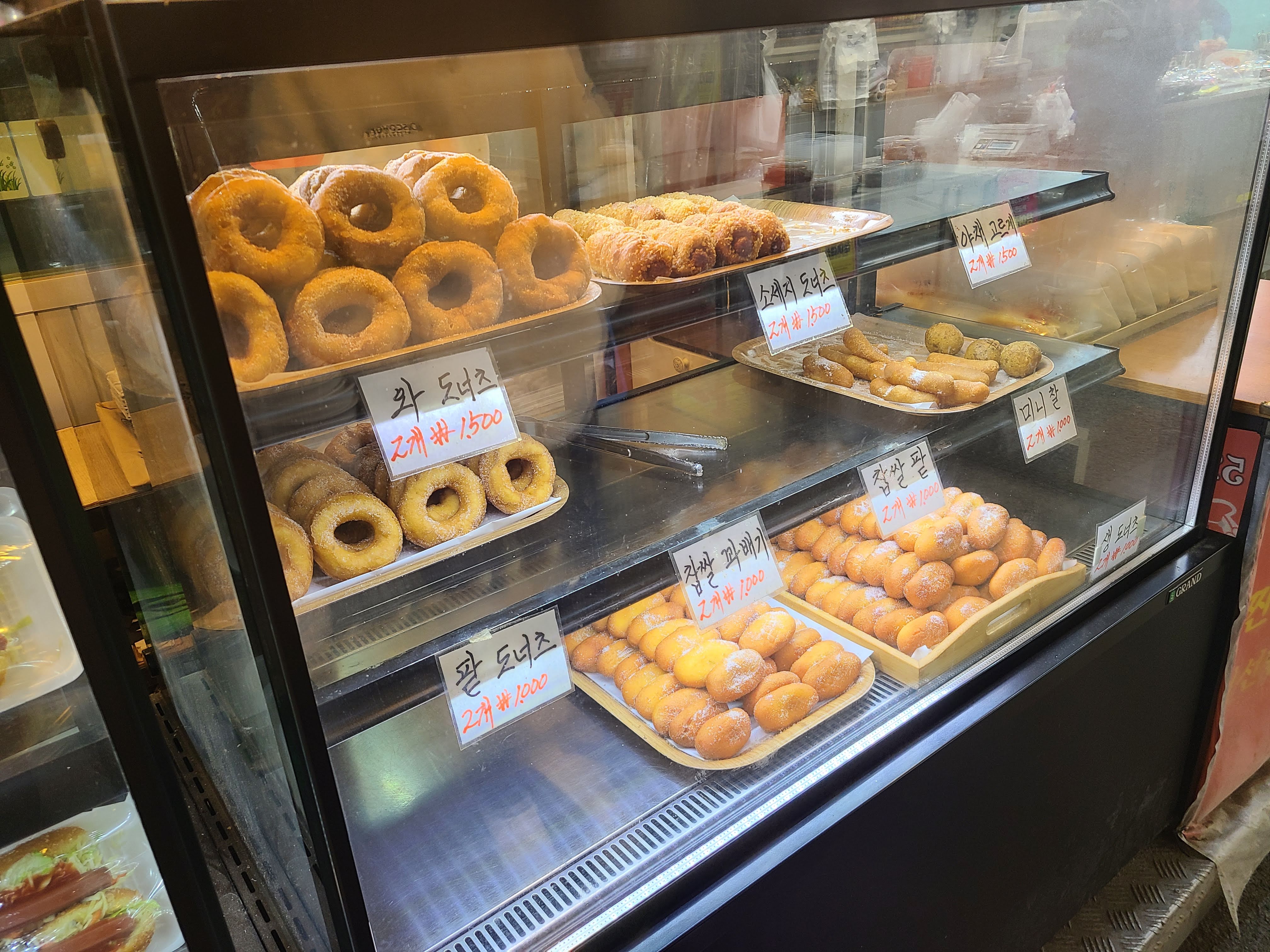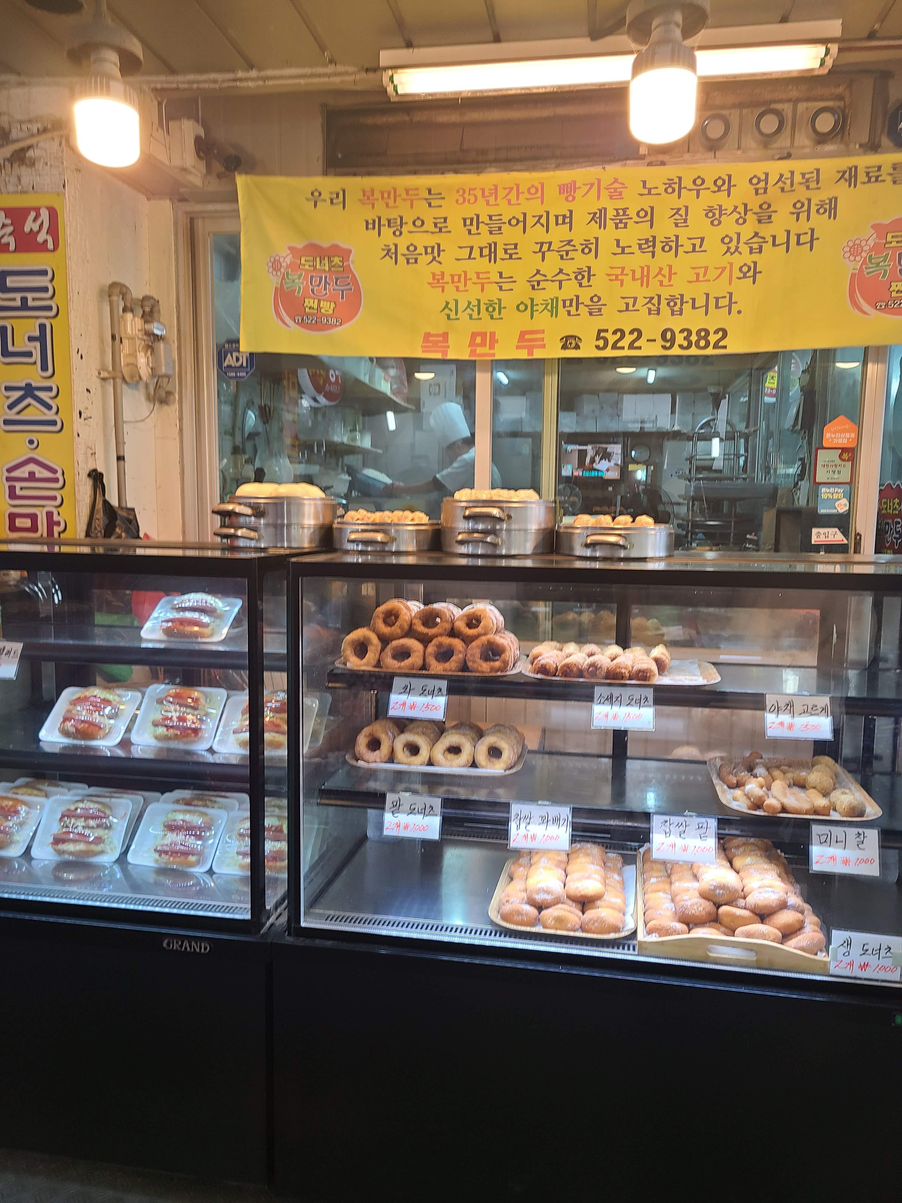 지금 사진을 보니 만두가 대표 음식인것 같은데.. 저는 만두보다는 진열되어 있는 도너츠에 더 신경이 갔습니다.