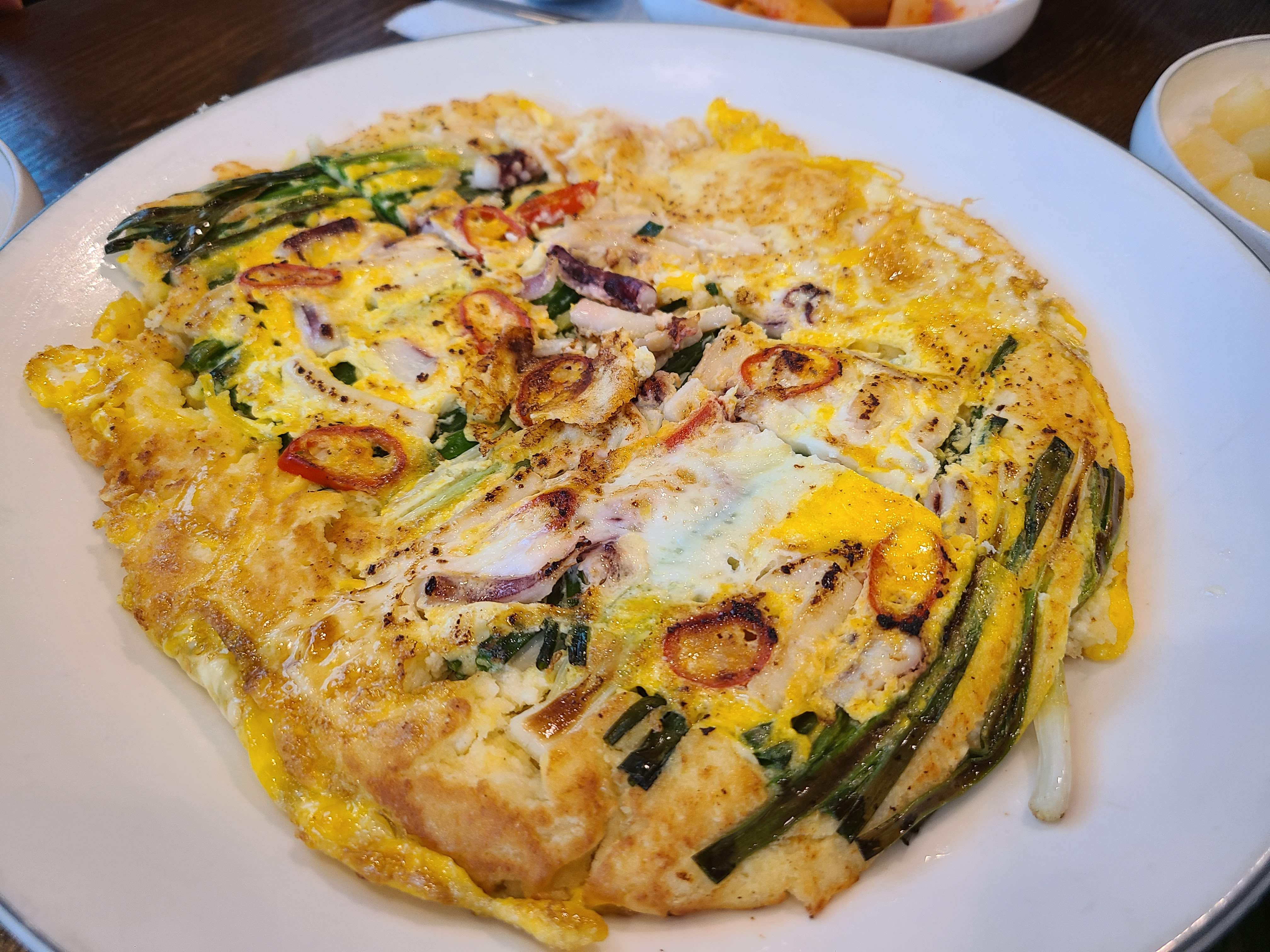콩해물파전입니다. 처음 본 것은 이쁩니다. 음식도 이쁘면 맛이 더하다는 것을 느꼈습니다.