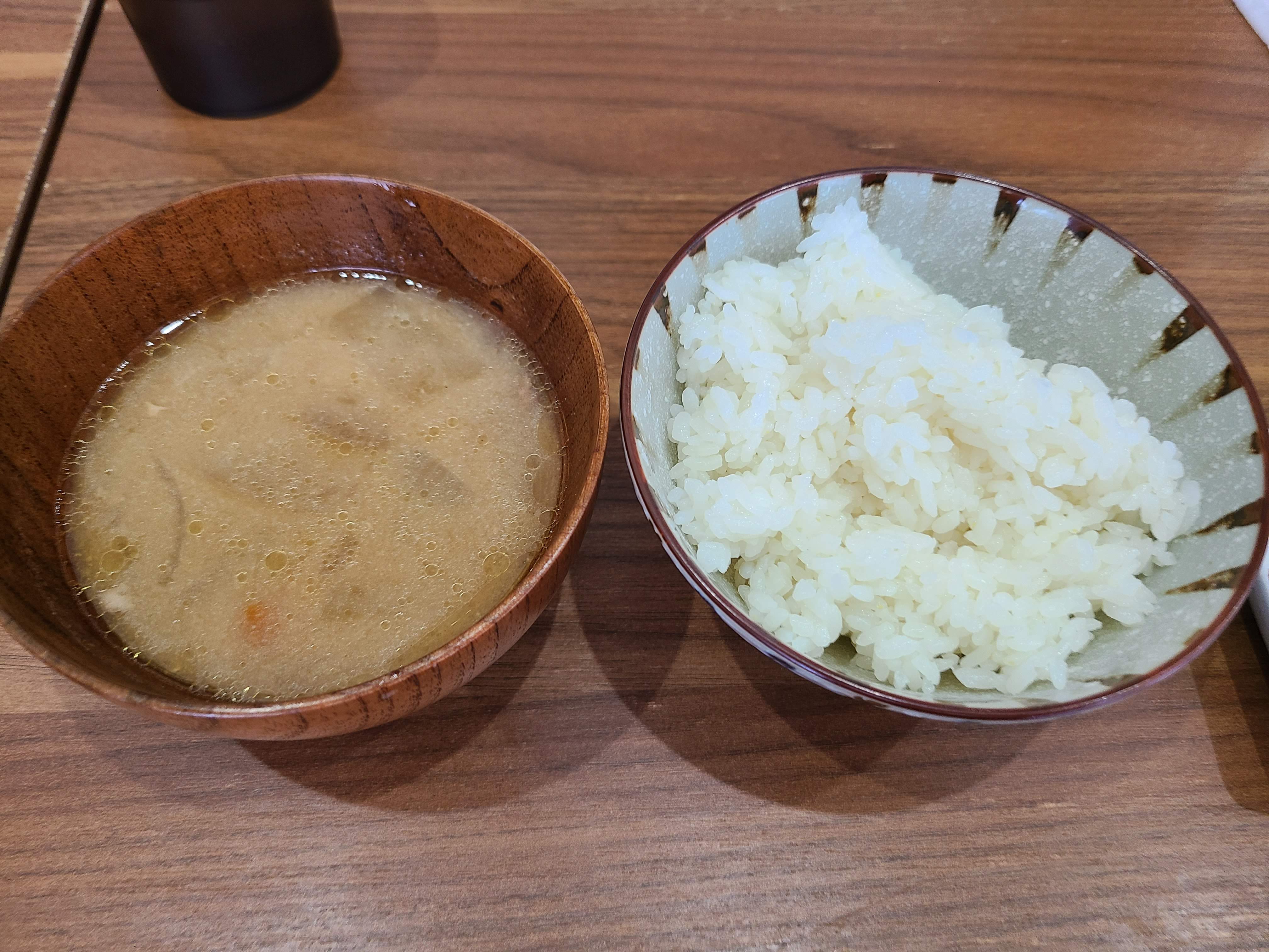 함께 나온 밥과 장국 입니다. 일본밥은 맛이 있네요. 그냥 밥만 먹어도 맛있습니다.
