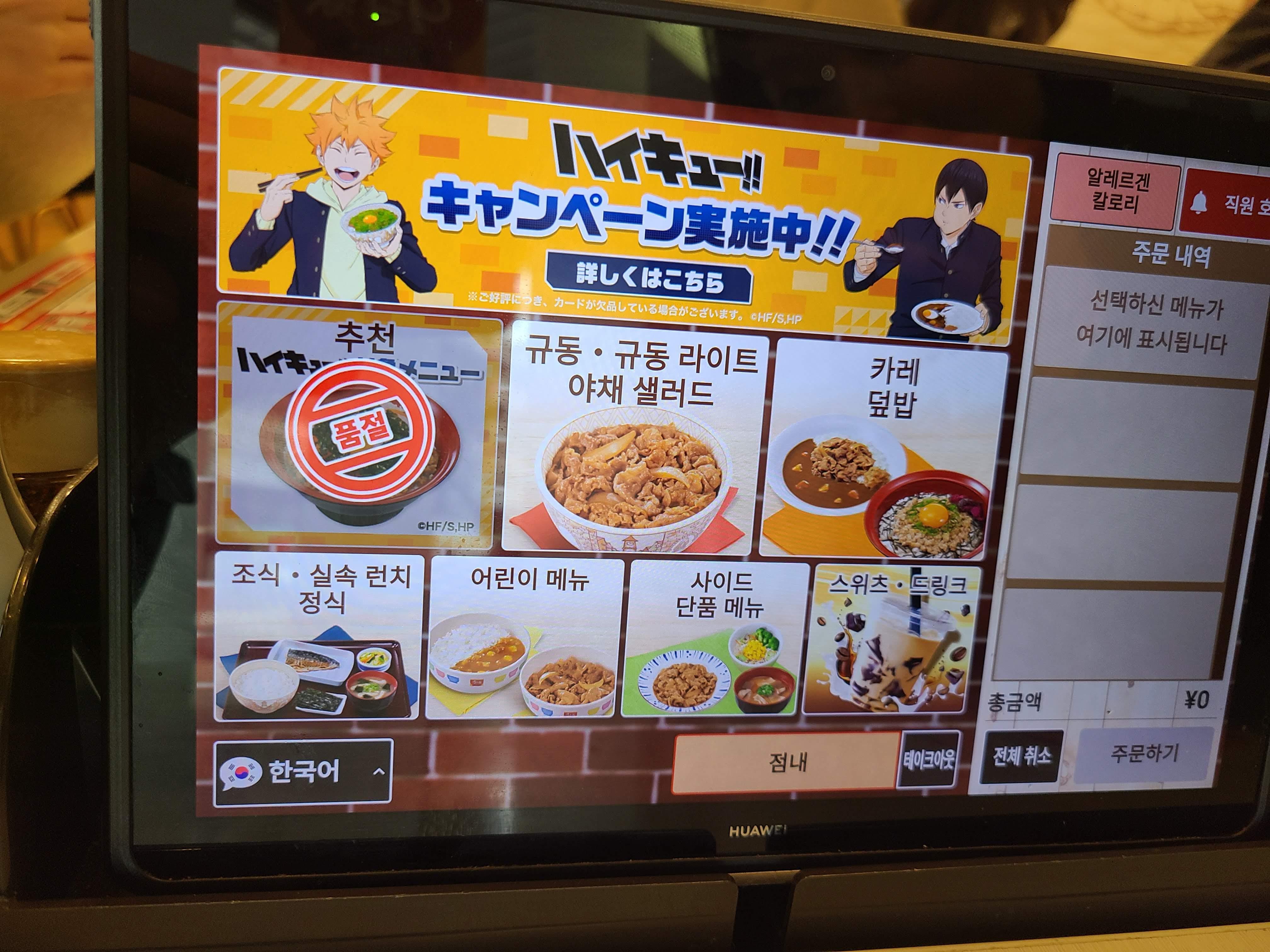 키오스크입니다. 다행히 한국어로 되어 있습니다.
