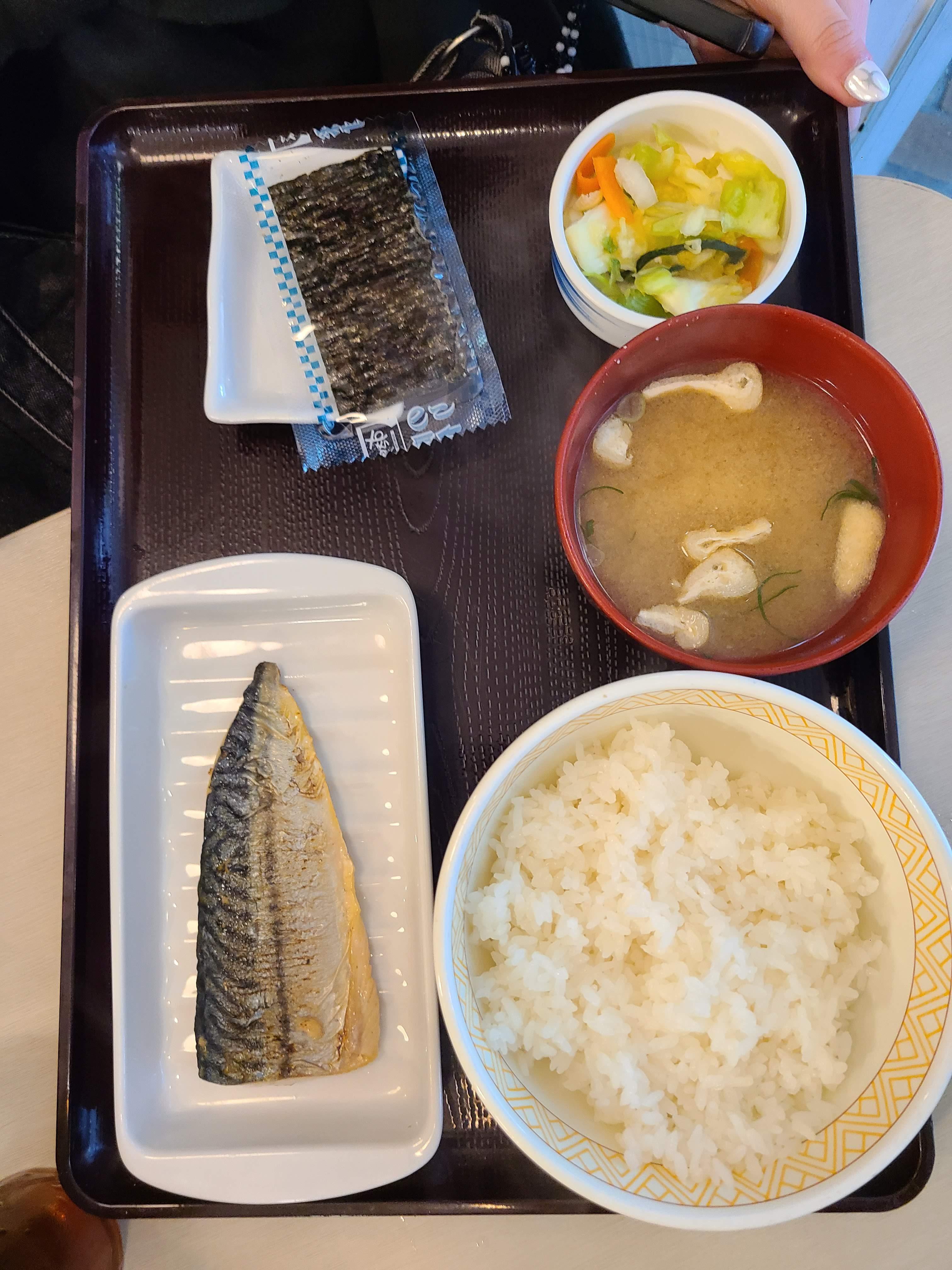 첫번재 음식이 고등어 정식이고요, 아래의 것이 제가 주문한 소고기 정식입니다. 어떻게 먹는지 몰라서 물어보았는데 계란을 풀어서 소고기에 적셔 먹으라고 하였습니다. 맛있었습니다. 장국도 평범하게 맛있었고요..