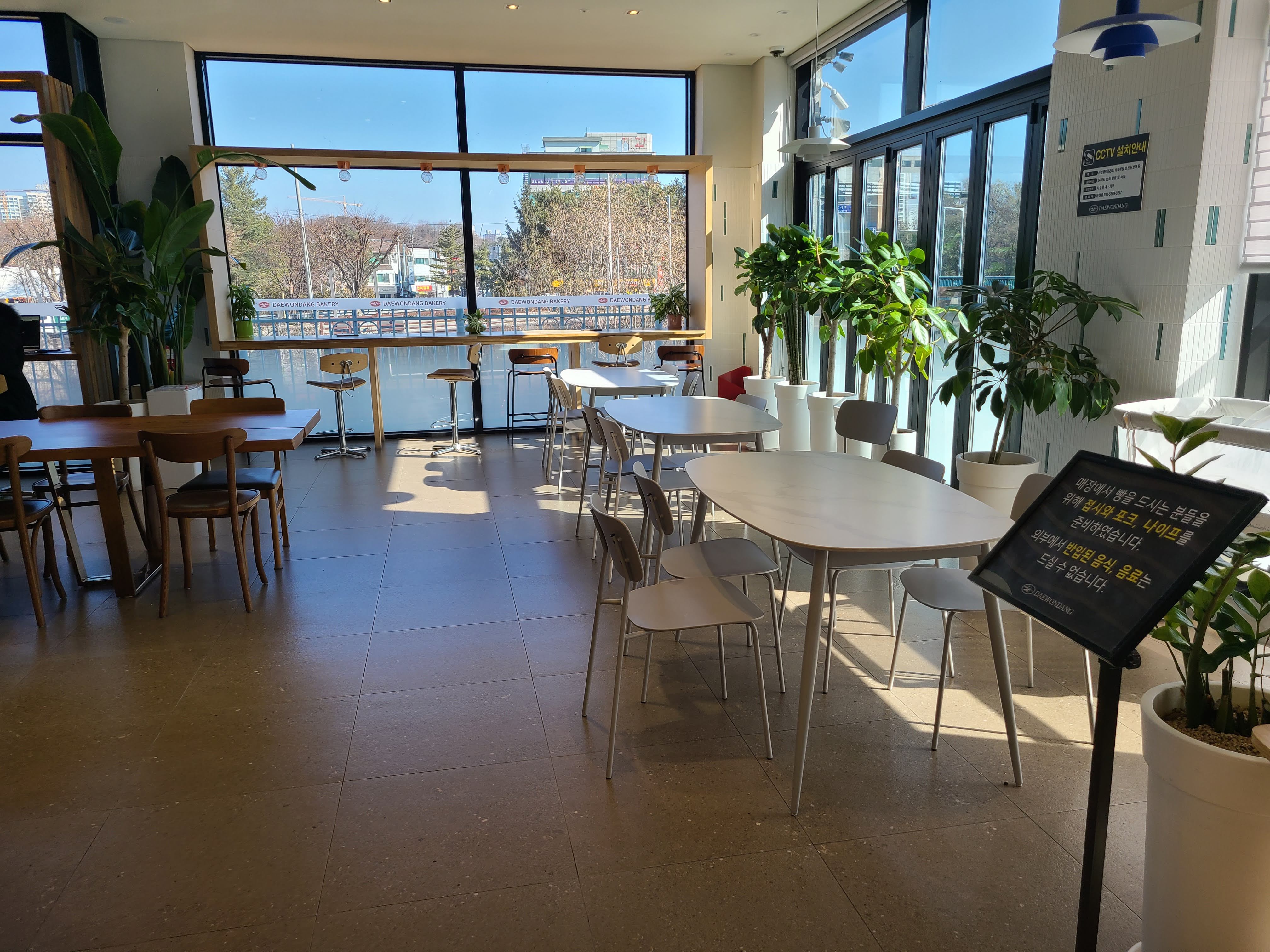 안에서 빵을 먹을 수 있는 자리가 있습니다.