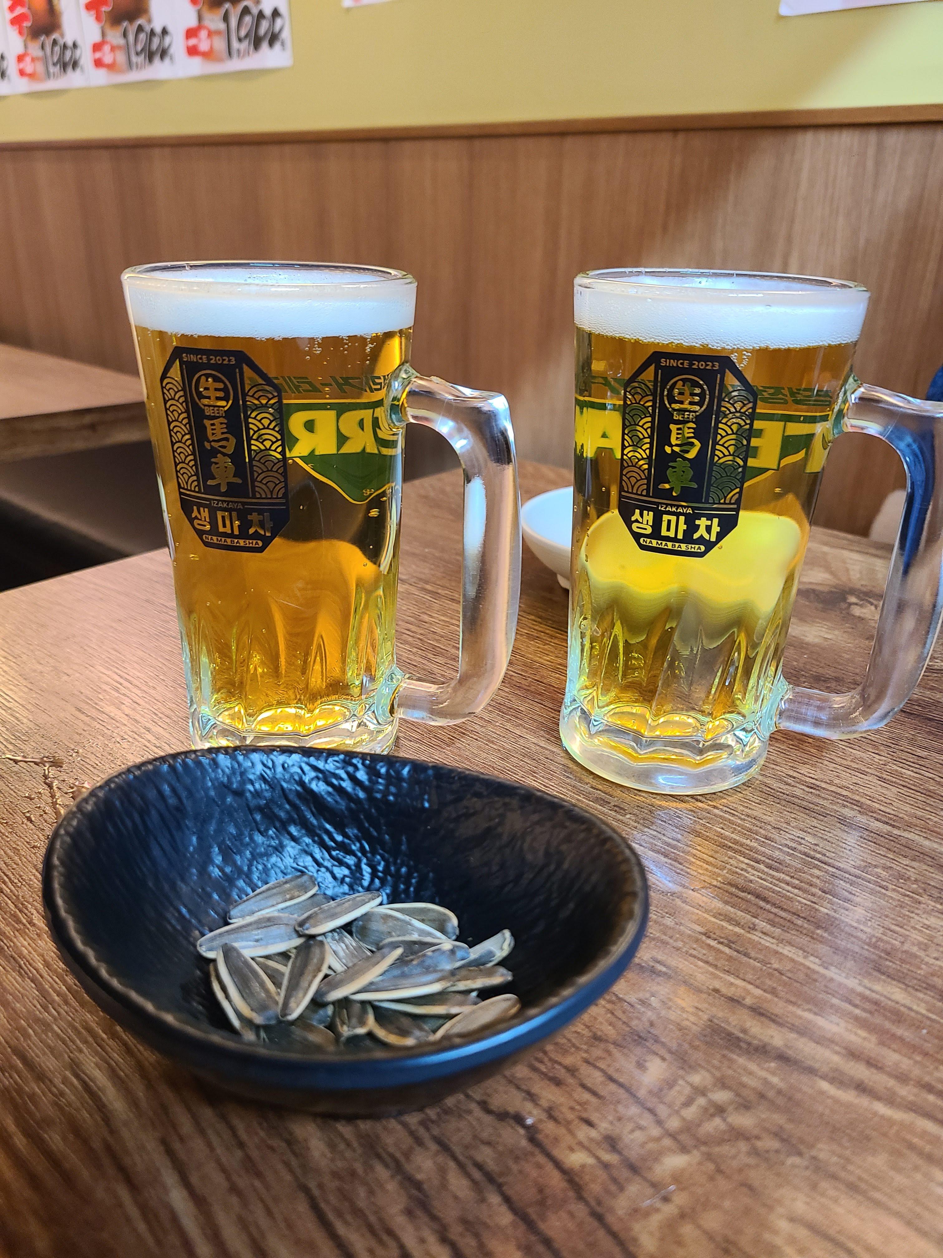 맥주를 주문했습니다. 맥주 맛있네요. 테라 생맥주인 것 같은데..