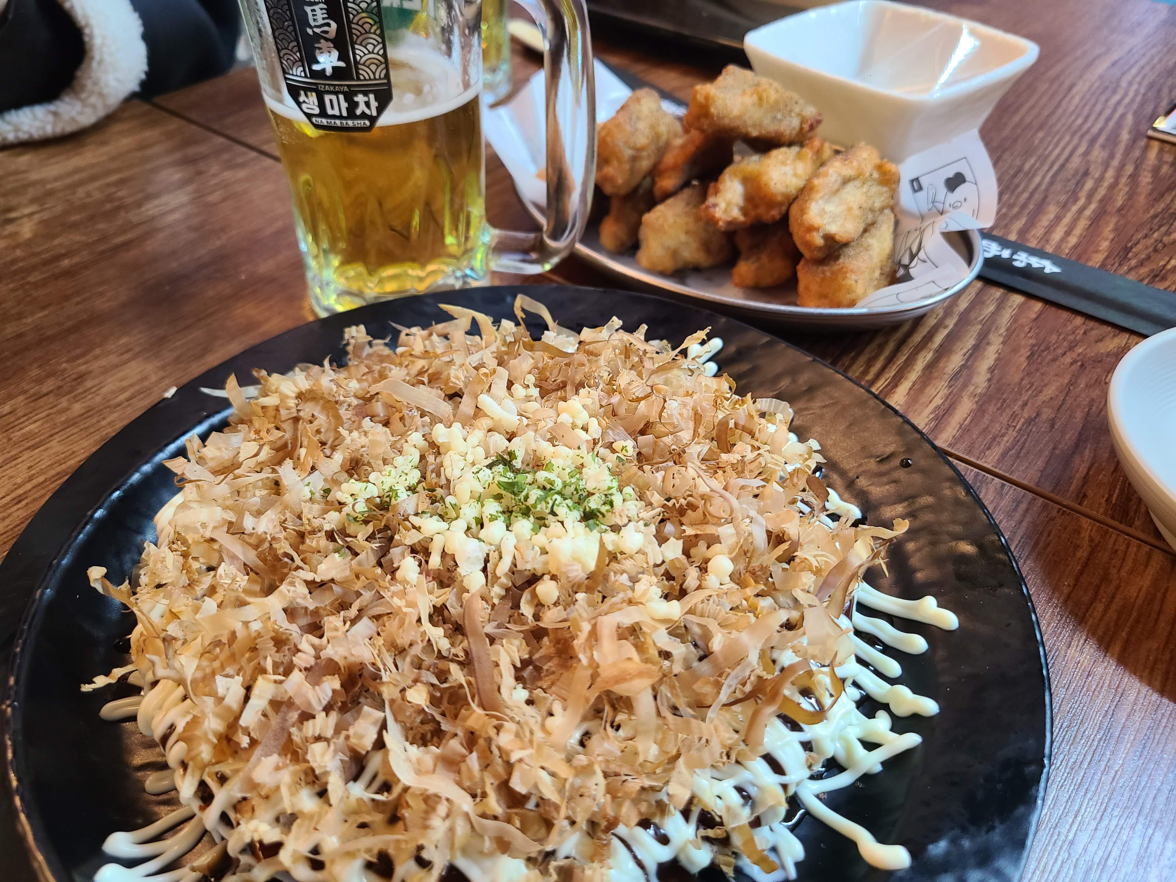 저와 같이 맥주를 먹는 맥주 친구인 분이 오꼬노모야끼를 좋아라 해서 이분이 주문을 했는데.. 잘 주문한 것 같네요.