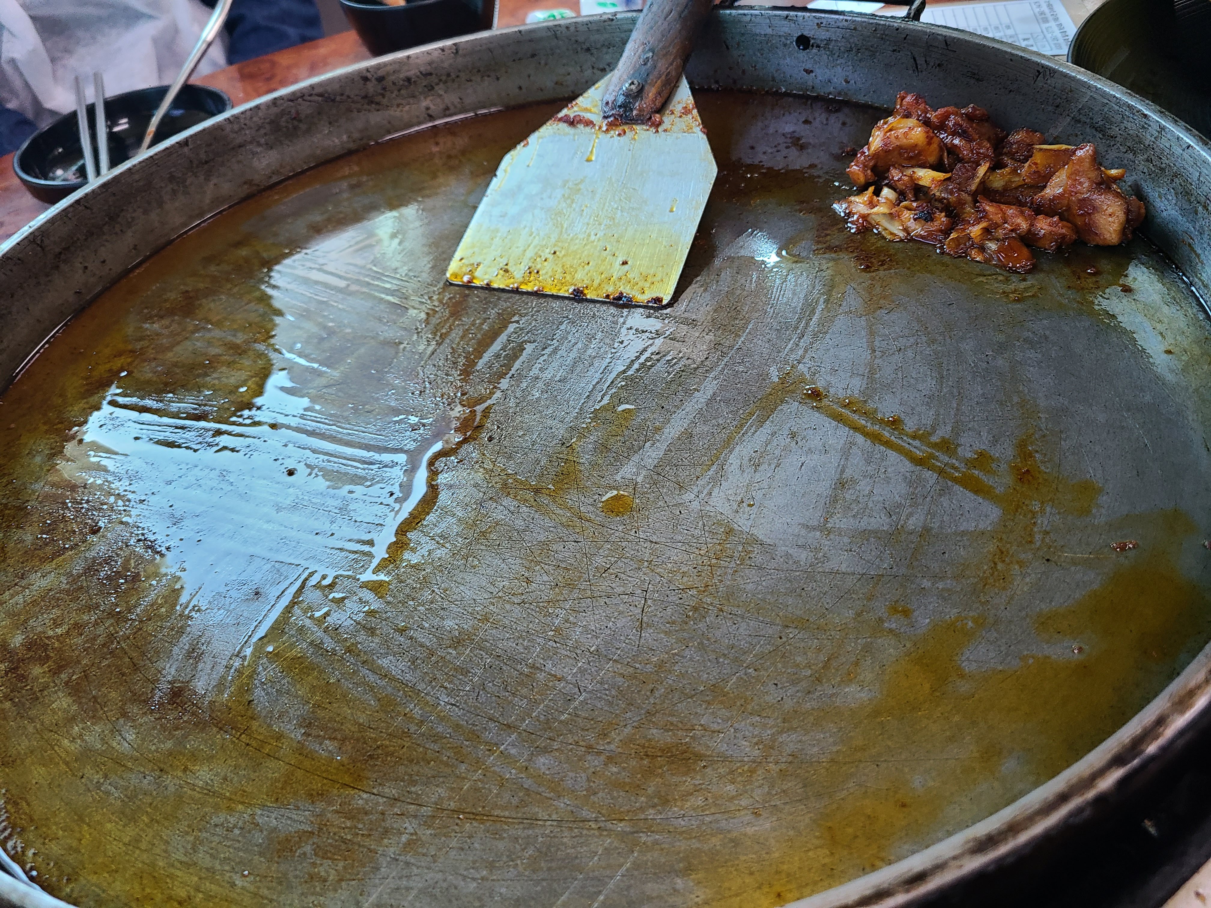 여기의 닭갈비는 기름이 많습니다. 닭갈비에 기름이 코팅되는 것 같아요.