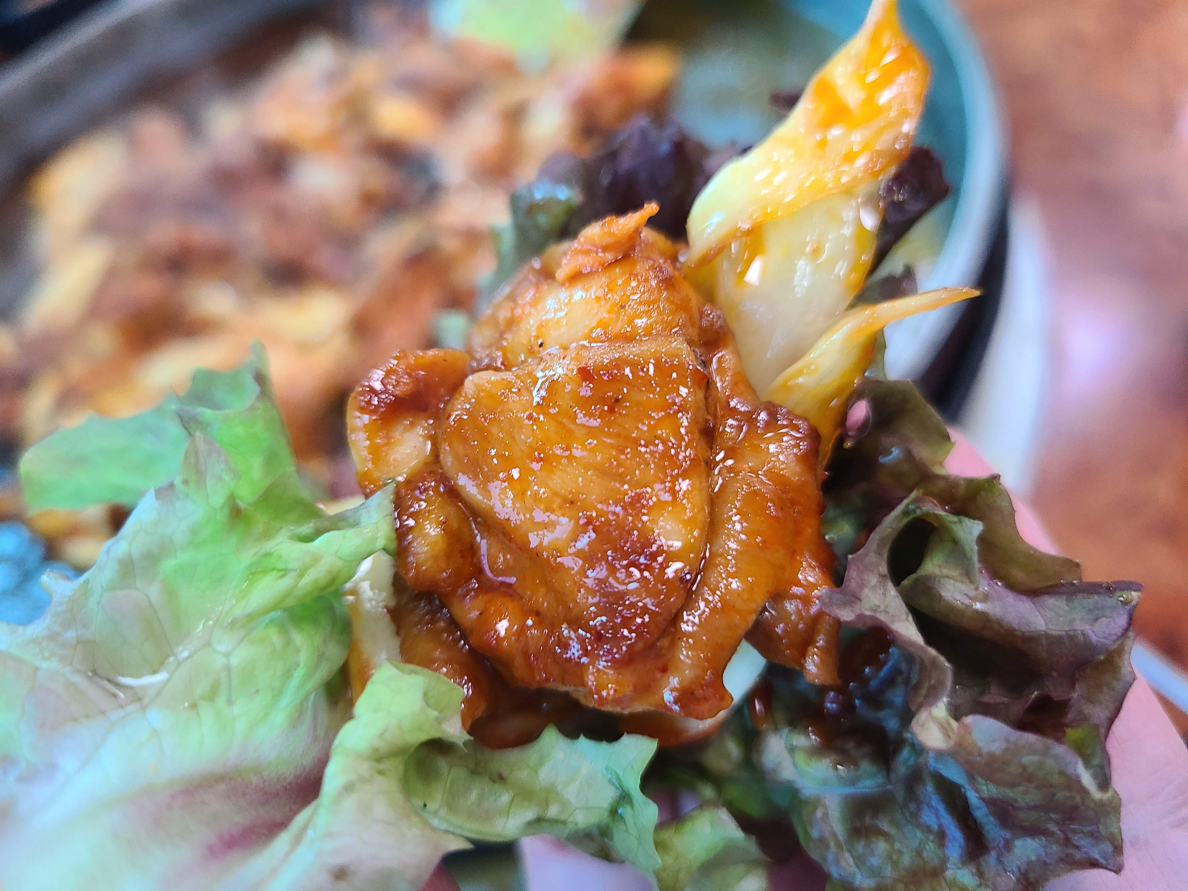 춘천에서만 먹을 수 있는 닭갈비의 맛이라는 표현밖에는 다른 표현이 생각나지 않네요.