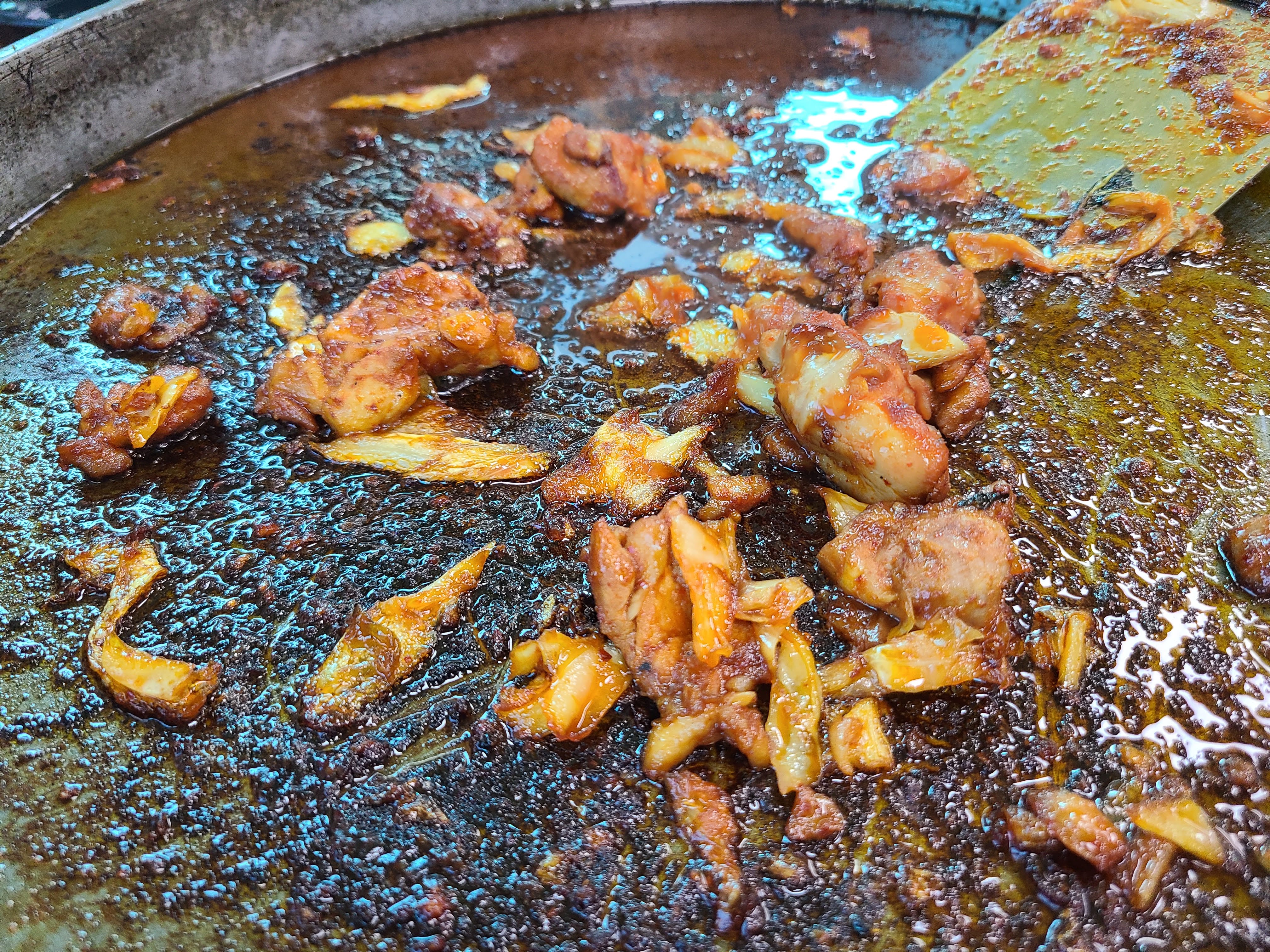 여기의 닭갈비는 기름이 많습니다. 닭갈비에 기름이 코팅되는 것 같아요.