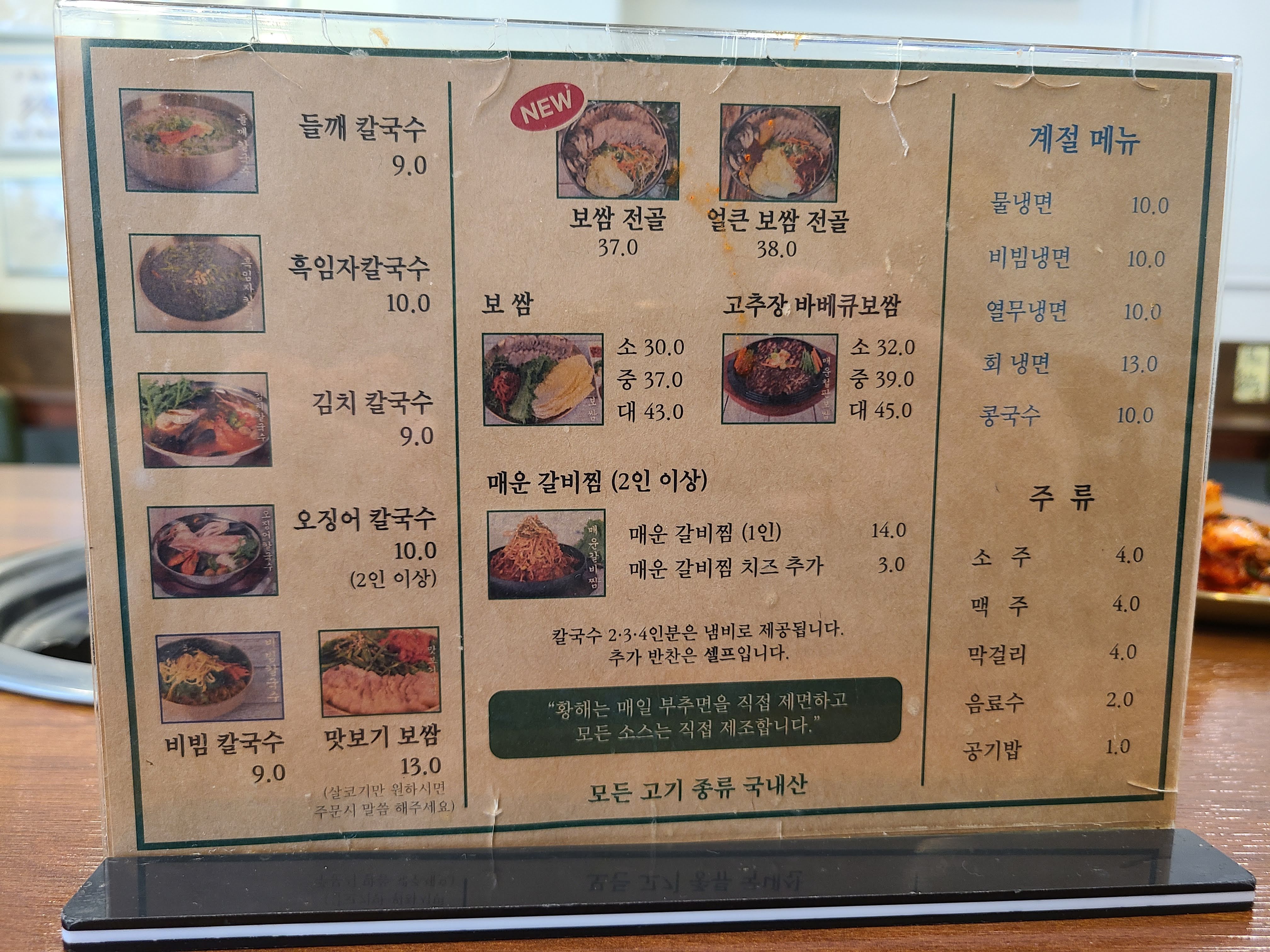 보쌈, 매운갈비찜, 냉면도 보이던데.. 저는 들깨 칼국수를 주문했습니다.