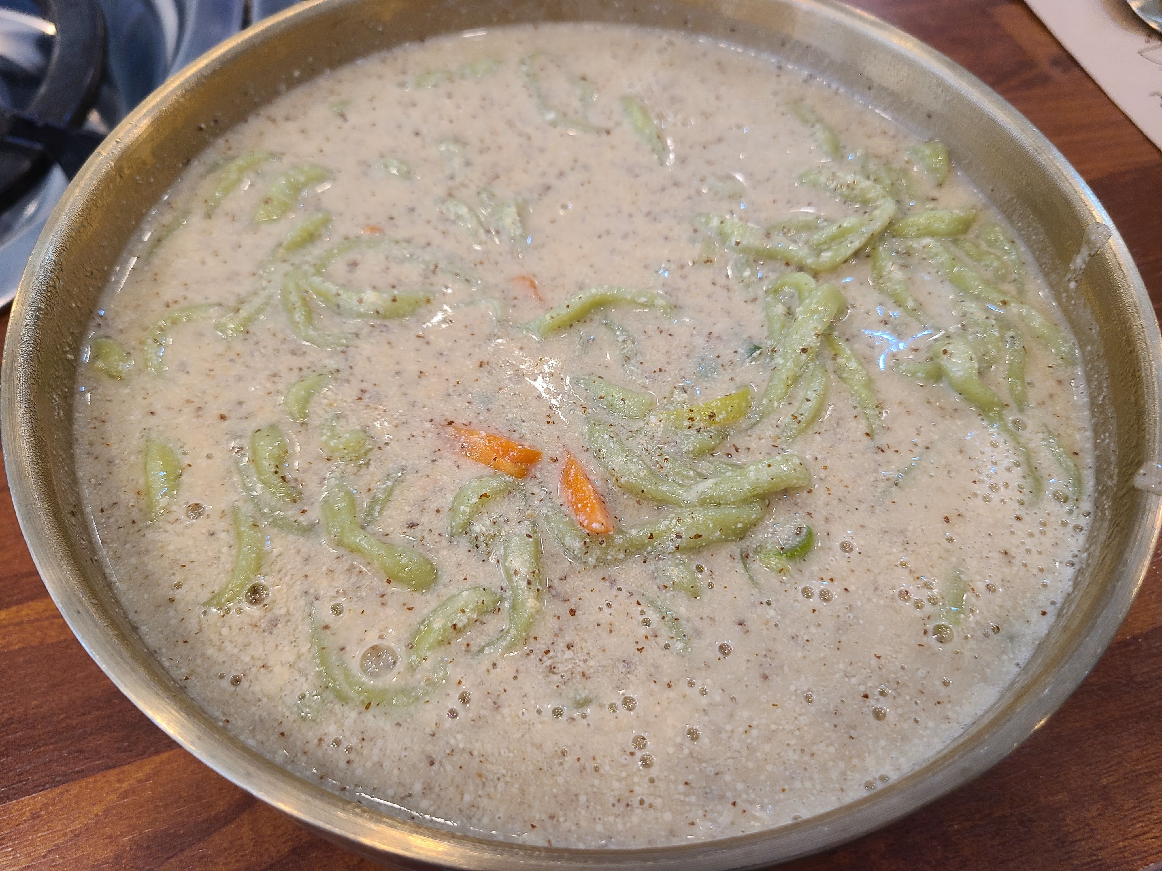 칼국수 국물은 너무나 진합니다. 들깨의 향이 가득합니다. 조금 아주 많이... 보통 말하는 걸쭉하다고 해야 할까?  농도가 짙다고 해야 할까? 좋습니다.