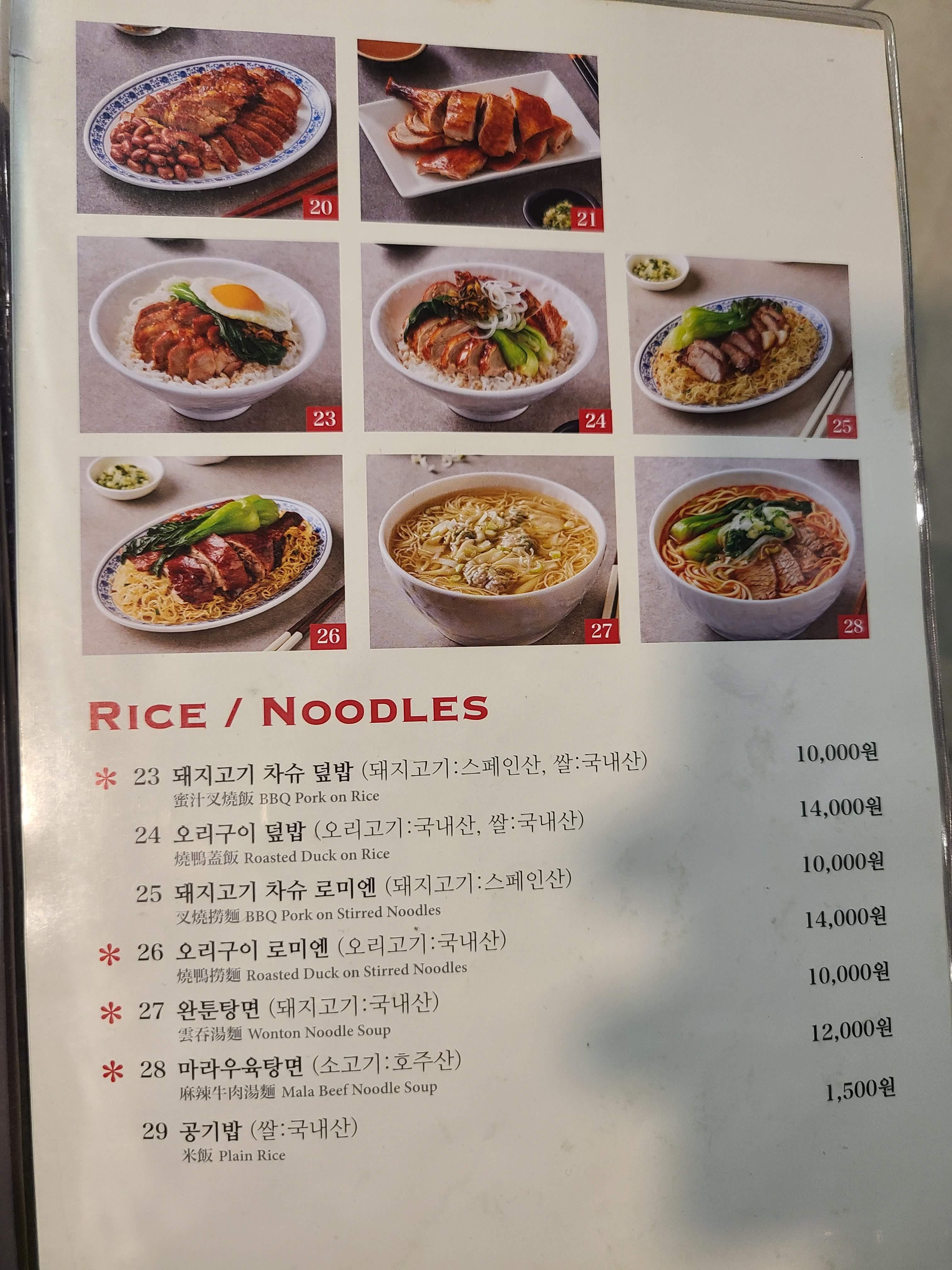 약간 부족한 것 같아서 식사로 오리구이 로미엔과 완툰탕면을 주문했습니다.