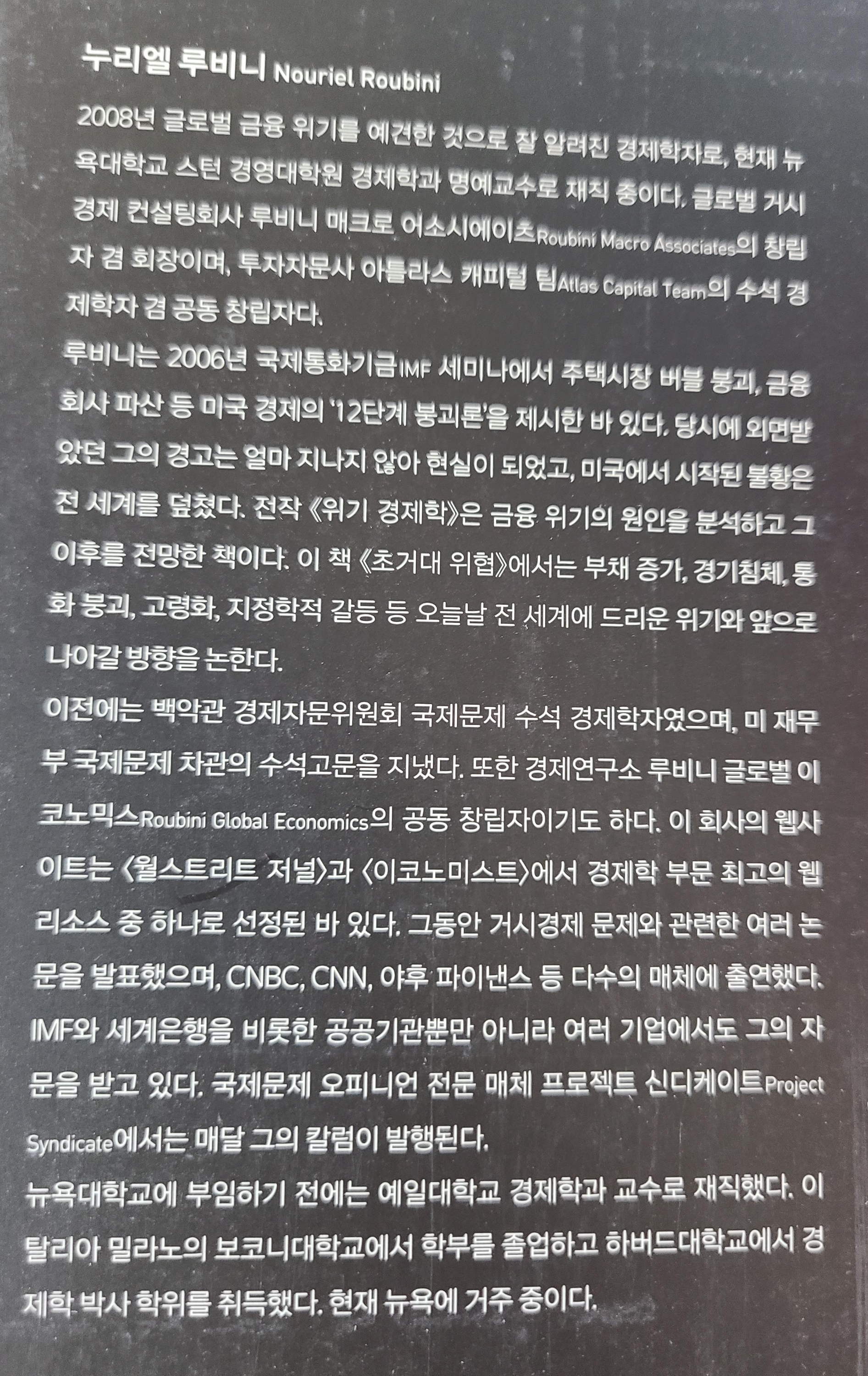 조금은 아니 아주 많이 무거운 내용의 책입니다. 초거대 위협.. 10가지 앞으로 다가올지 모르는 일(사건)에 대한 내용입니다.