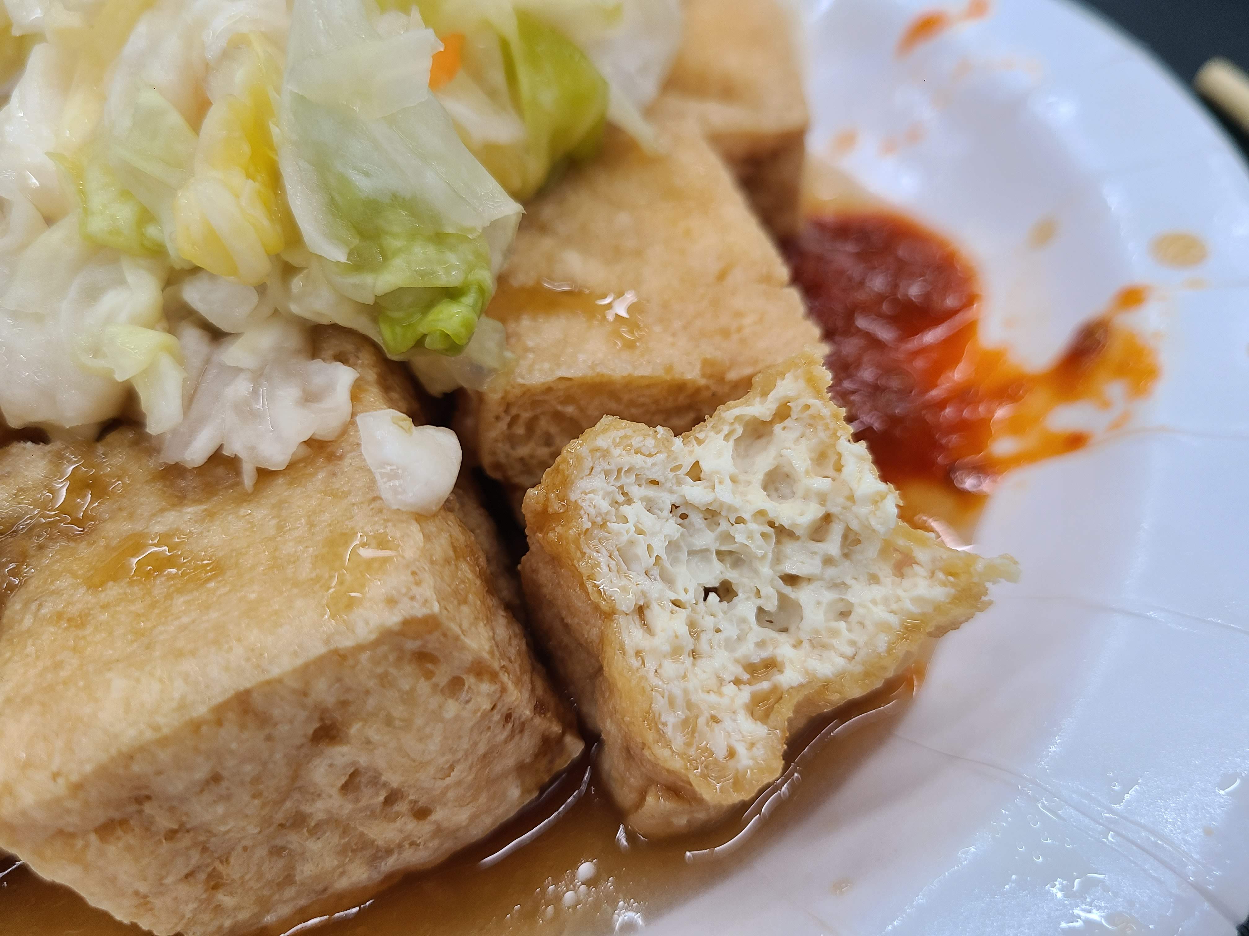 예. 취두부 입니다. 밖은 튀겨서 바삭하고요.. 안은 두부.. 하지만 취두부 향이 있는..