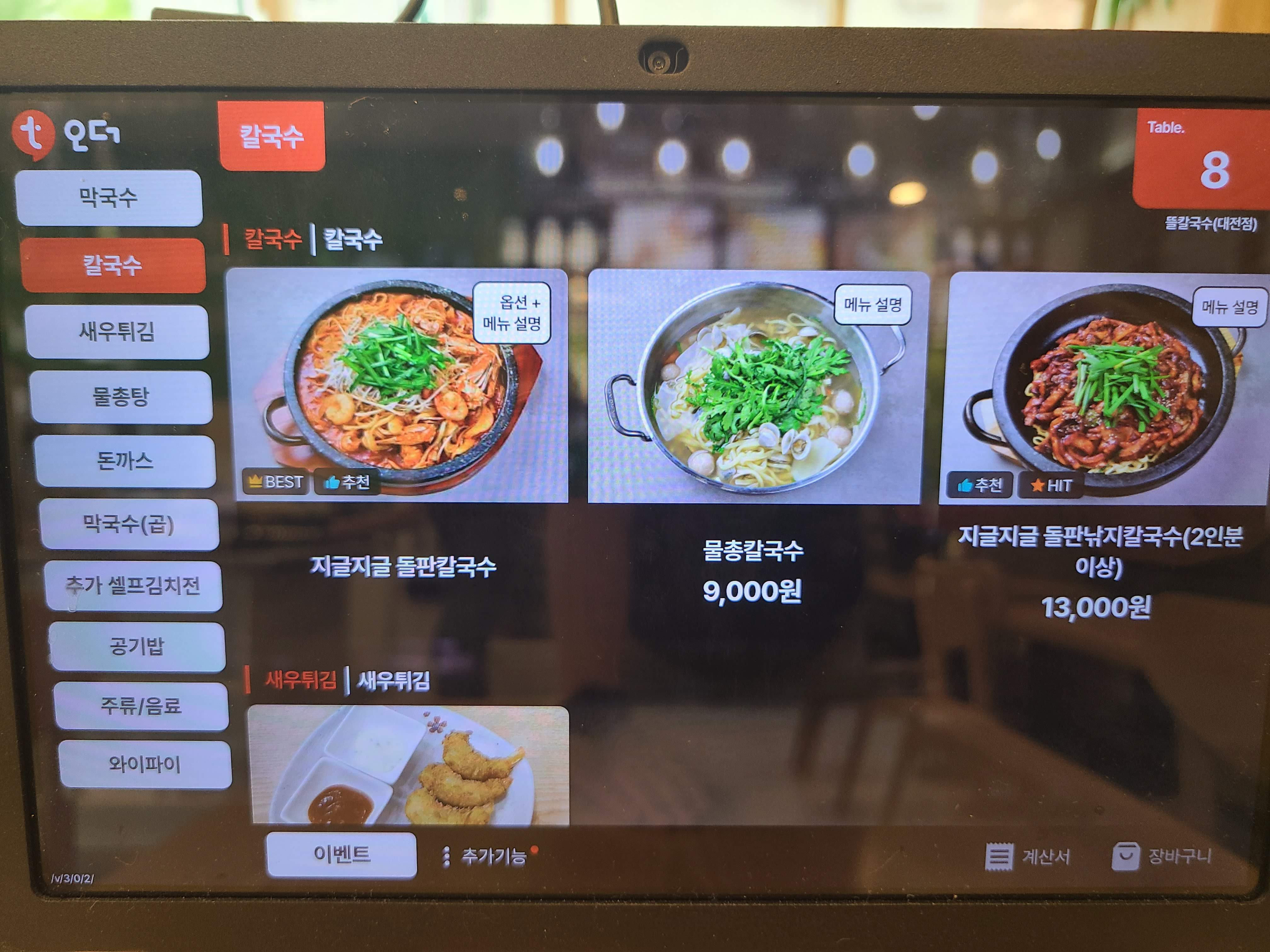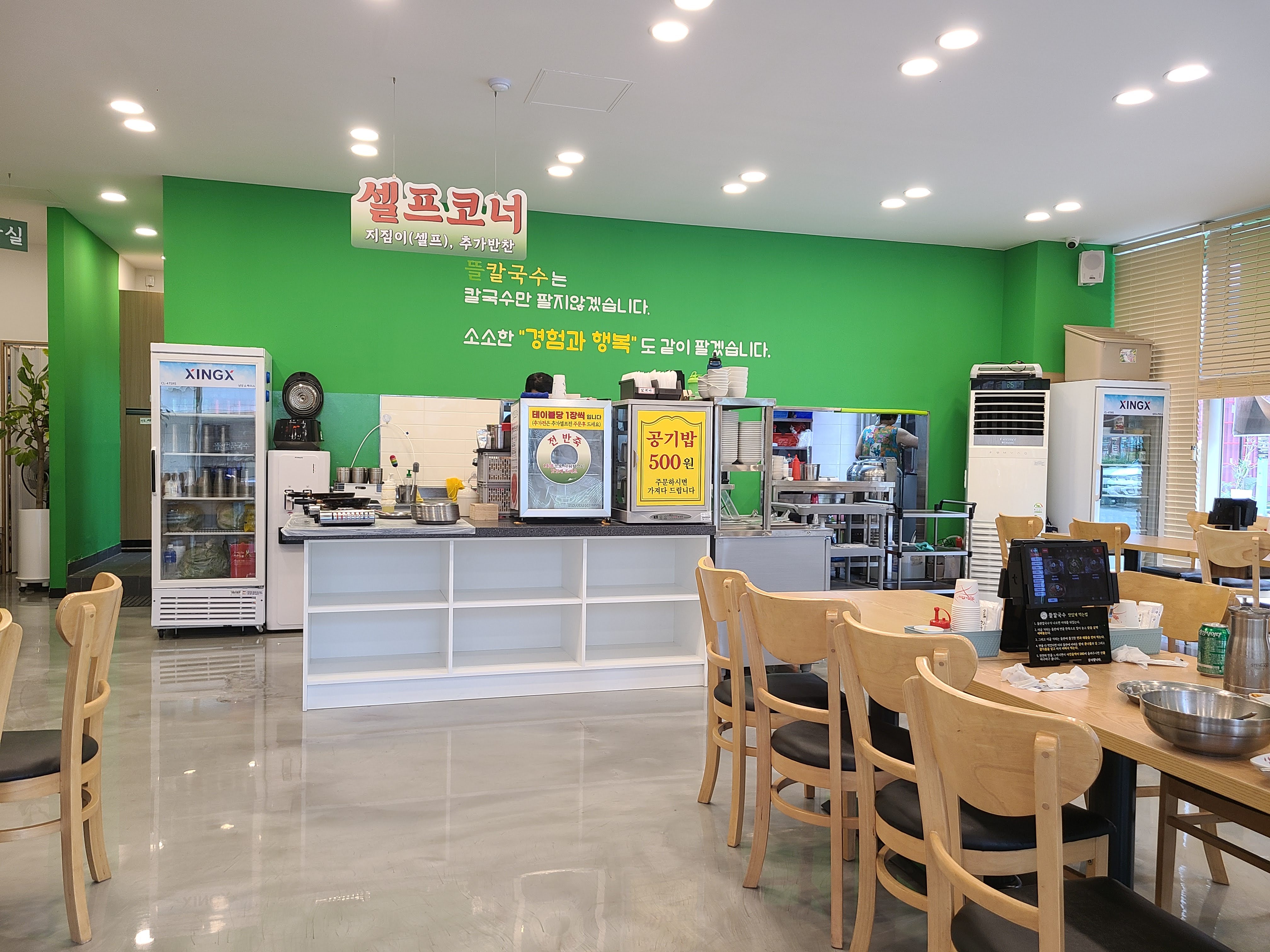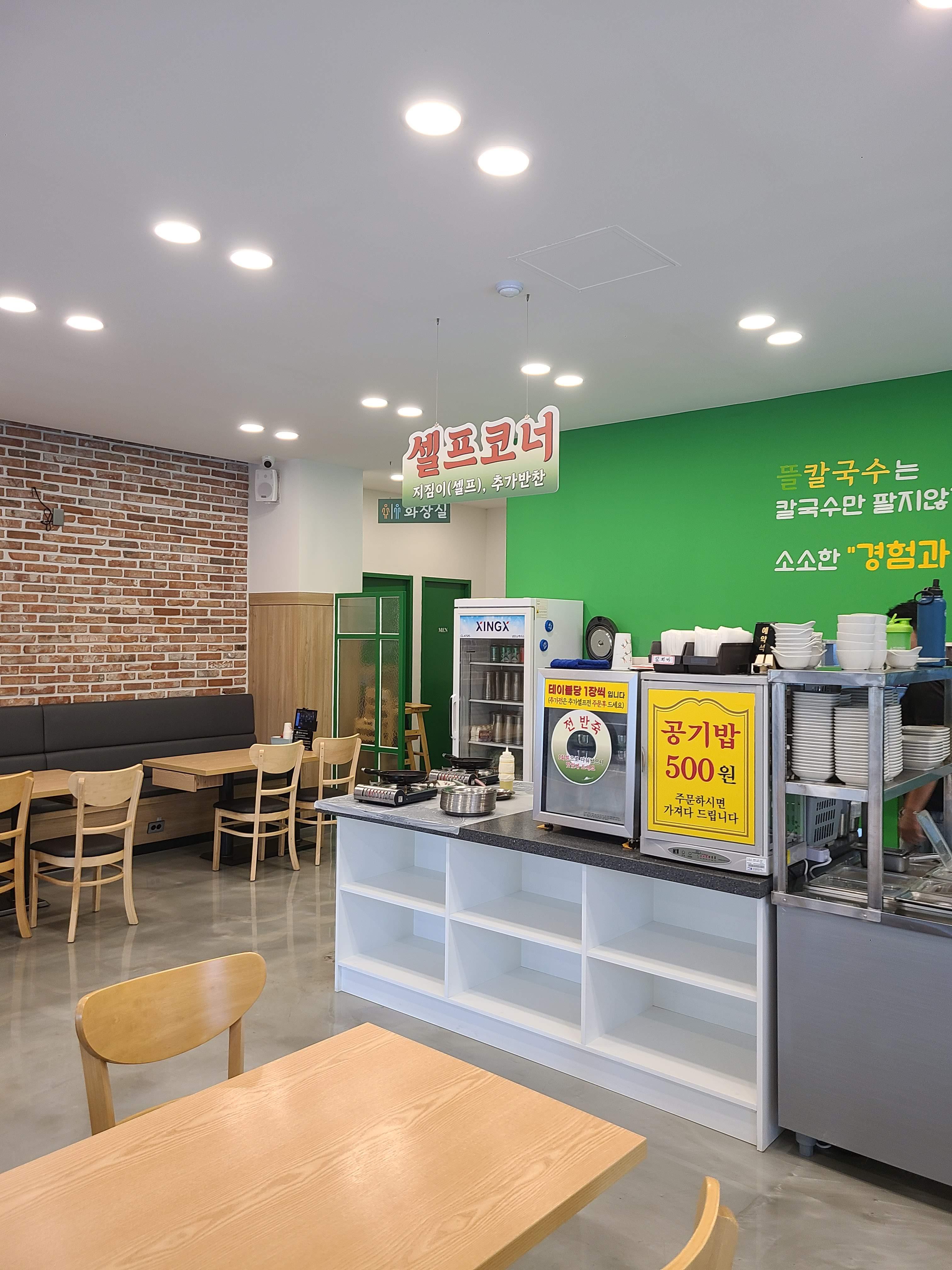 뜰칼국수 입니다. 키오스크로 주문을 하고 (이제는 신기하지 않네요..) 내부는 깨끗하네요.