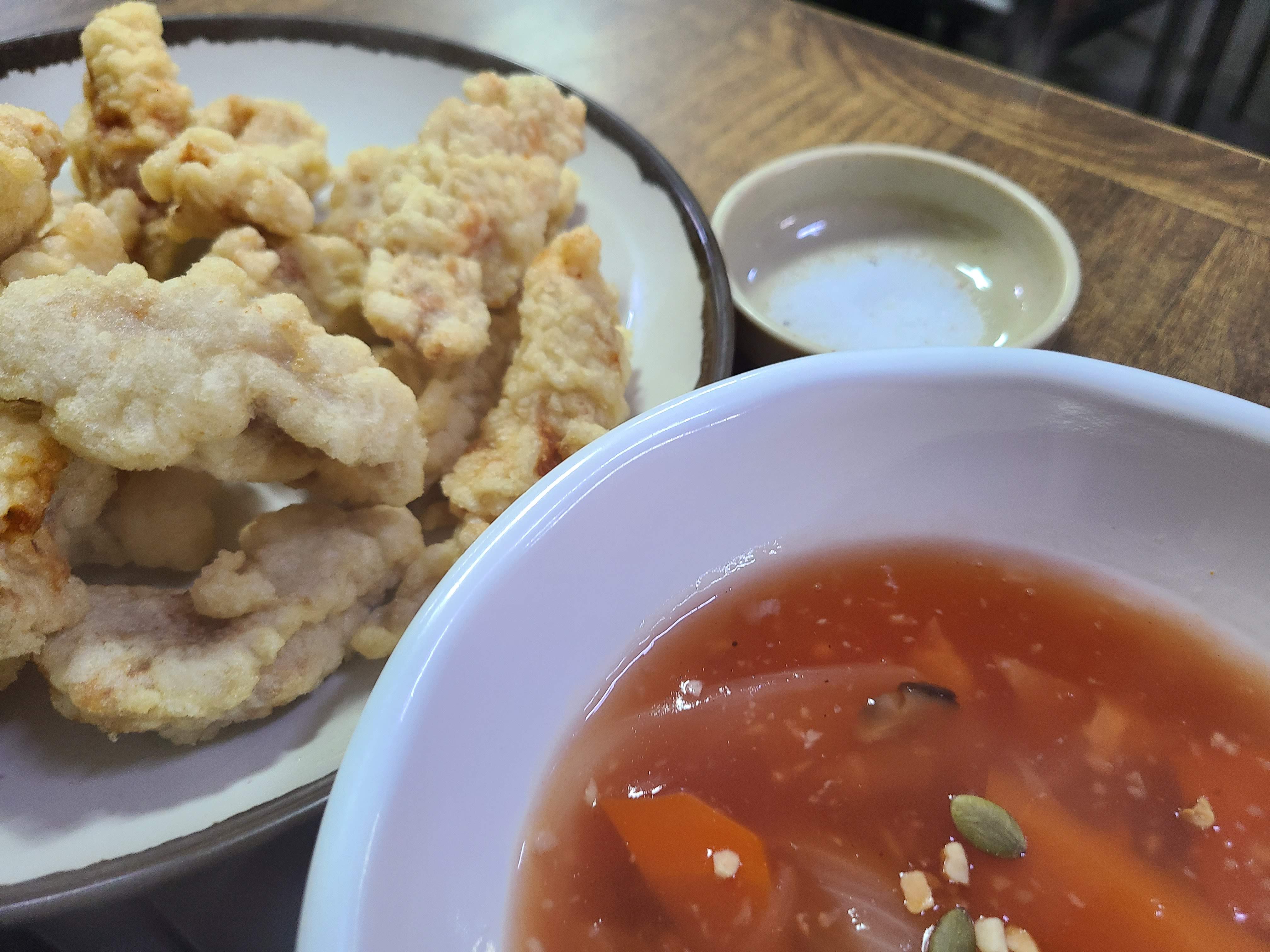 저는 소금과 먹는 것이 더 좋았습니다. 물론 부먹, 찍먹파가 있듯이 탕수육 소스와 함께 먹어도 맛있었지만, 소금과 함께 먹는 것이 더 좋았네요.. 저에게는요~~