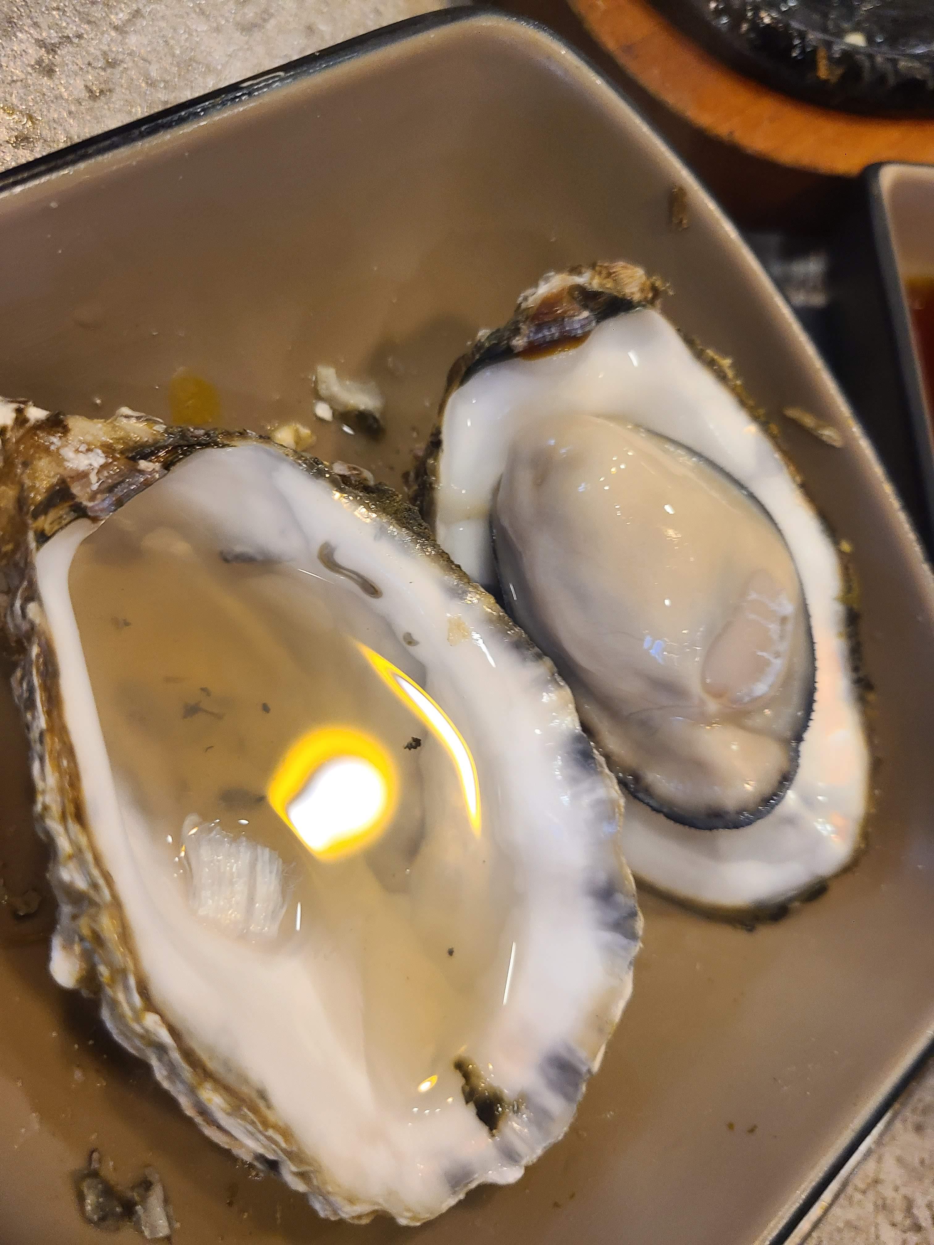 잘 벌어지지 않은 굴을 깠을때 함께 있는 굴의 육수(국물??)을 함께 먹으면 ... 맛있습니다.