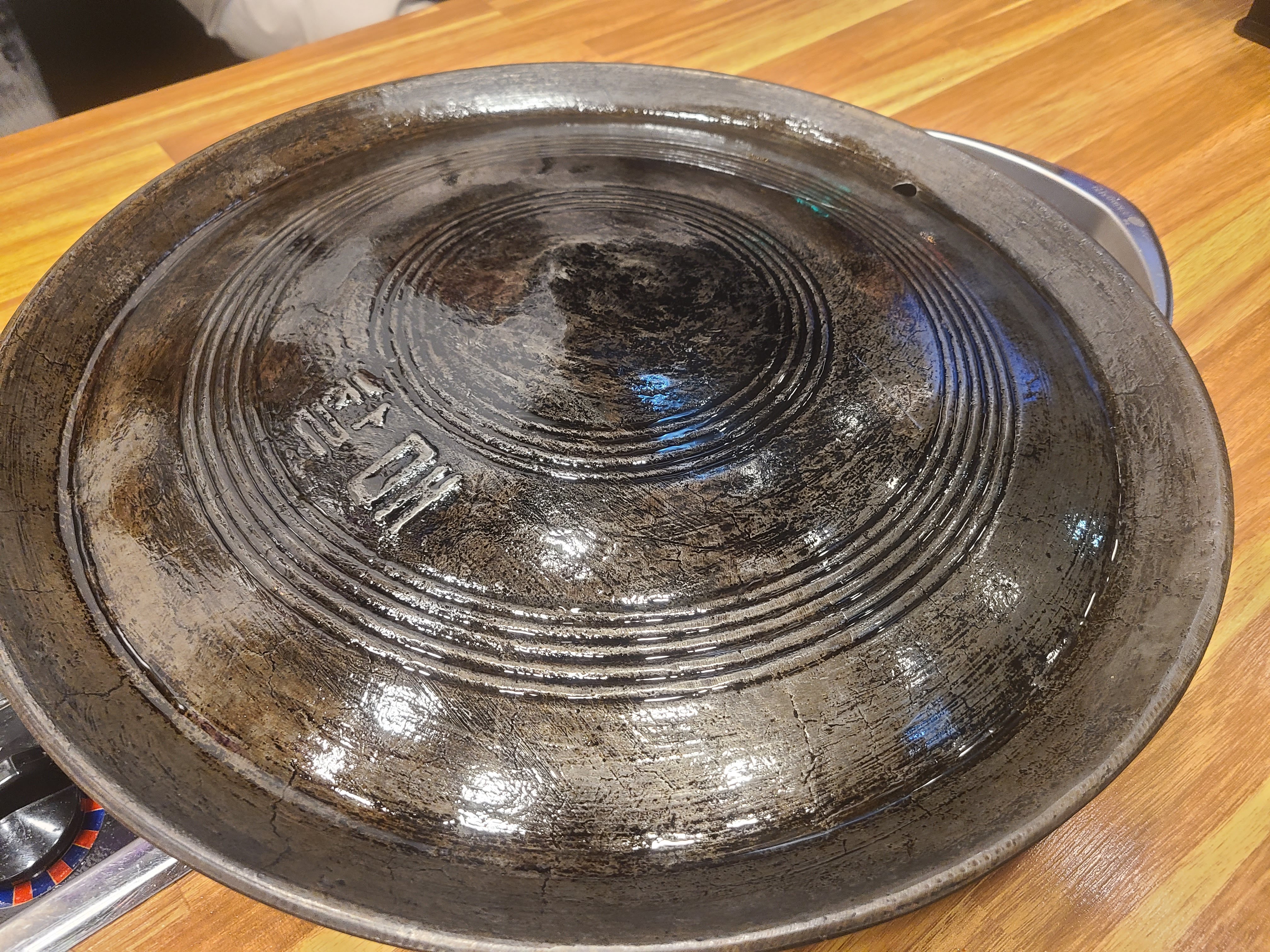 솥뚜껑입니다. 당연히 그렇겠지만...솥뚜껑에 구워먹어서 그런지 더 맛있네요. 그리고 삼겹살 기름과 함께 김치와 콩나물을 함께 하니 너무 좋습니다. 다른 기름이 아닌 삼겹살에서 나오는 지방의 기름이 더 맛나는 것 같아요..