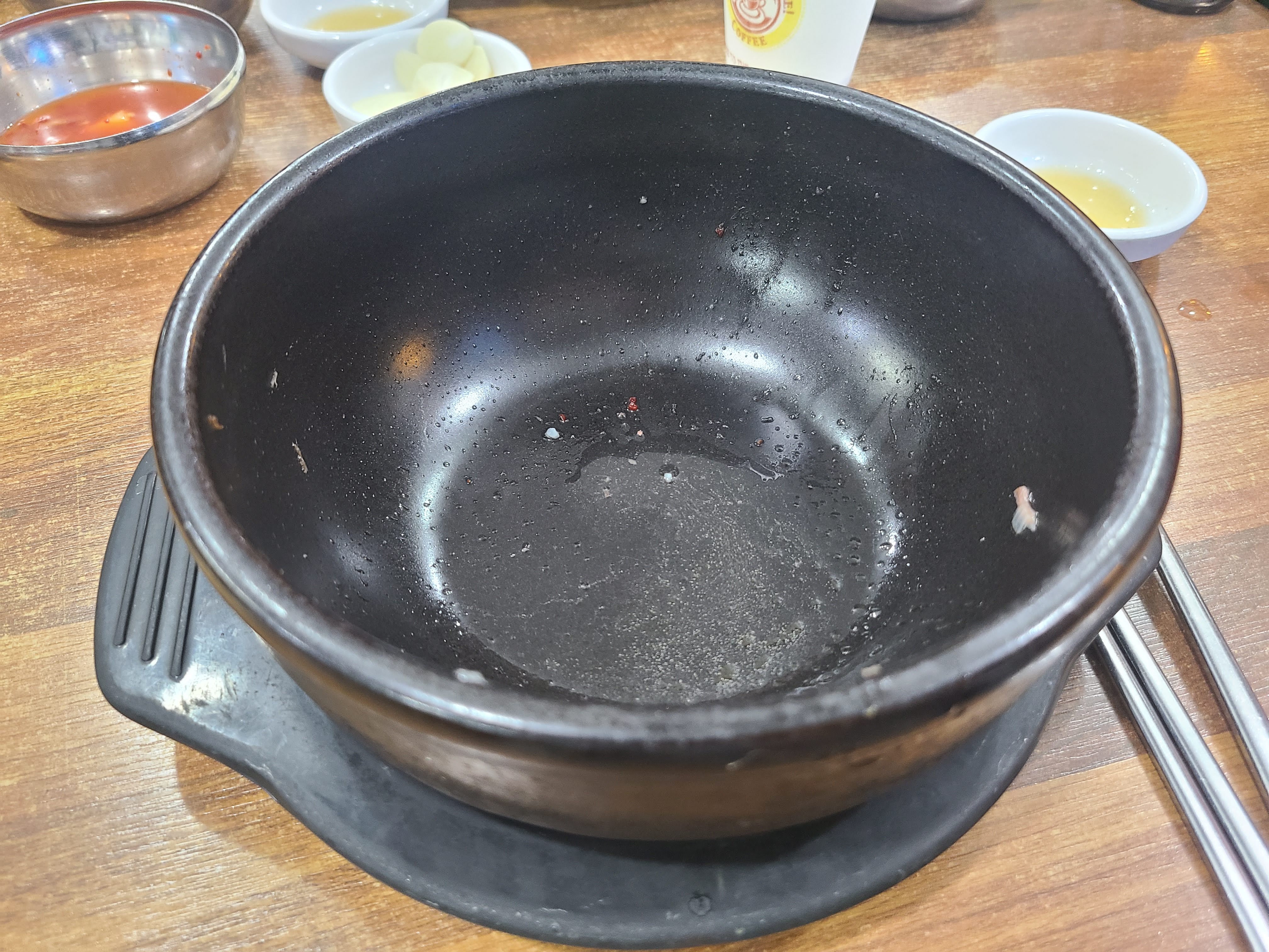 중간 정도 밥과 국을 따로 먹었습니다. 처음에는 밥을 국물에 적셔 먹었습니다.