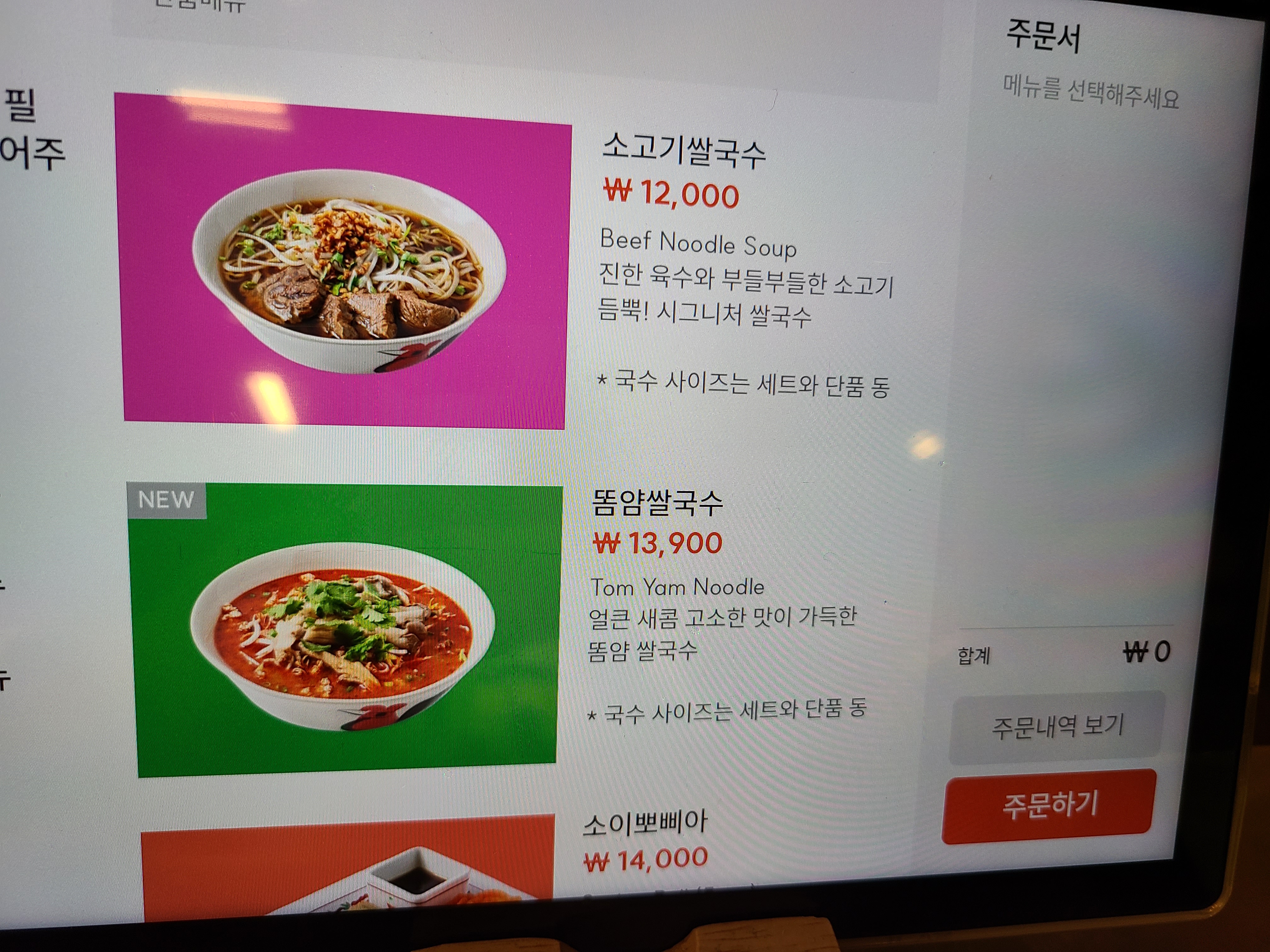 소고기 쌀국수는 몇 번을 먹어보았고, 먹어볼 때마다 선택에 후회는 없었습니다. 무엇을 시킬까 고민할 때는 HOT, 추천, 또는 가장 먼저 나오는 것을 시키는 것이 맞는 것 같습니다.