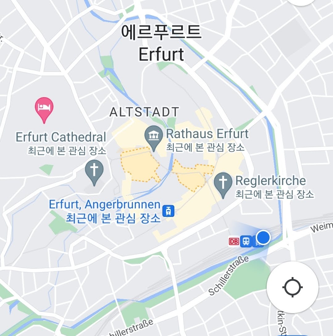 에르푸르트는 독일 중부에 있습니다. 수도원과 왕의 저택이 있는 곳이라 꼭 수도원과 저택을 보고 오실 것을 추천합니다.