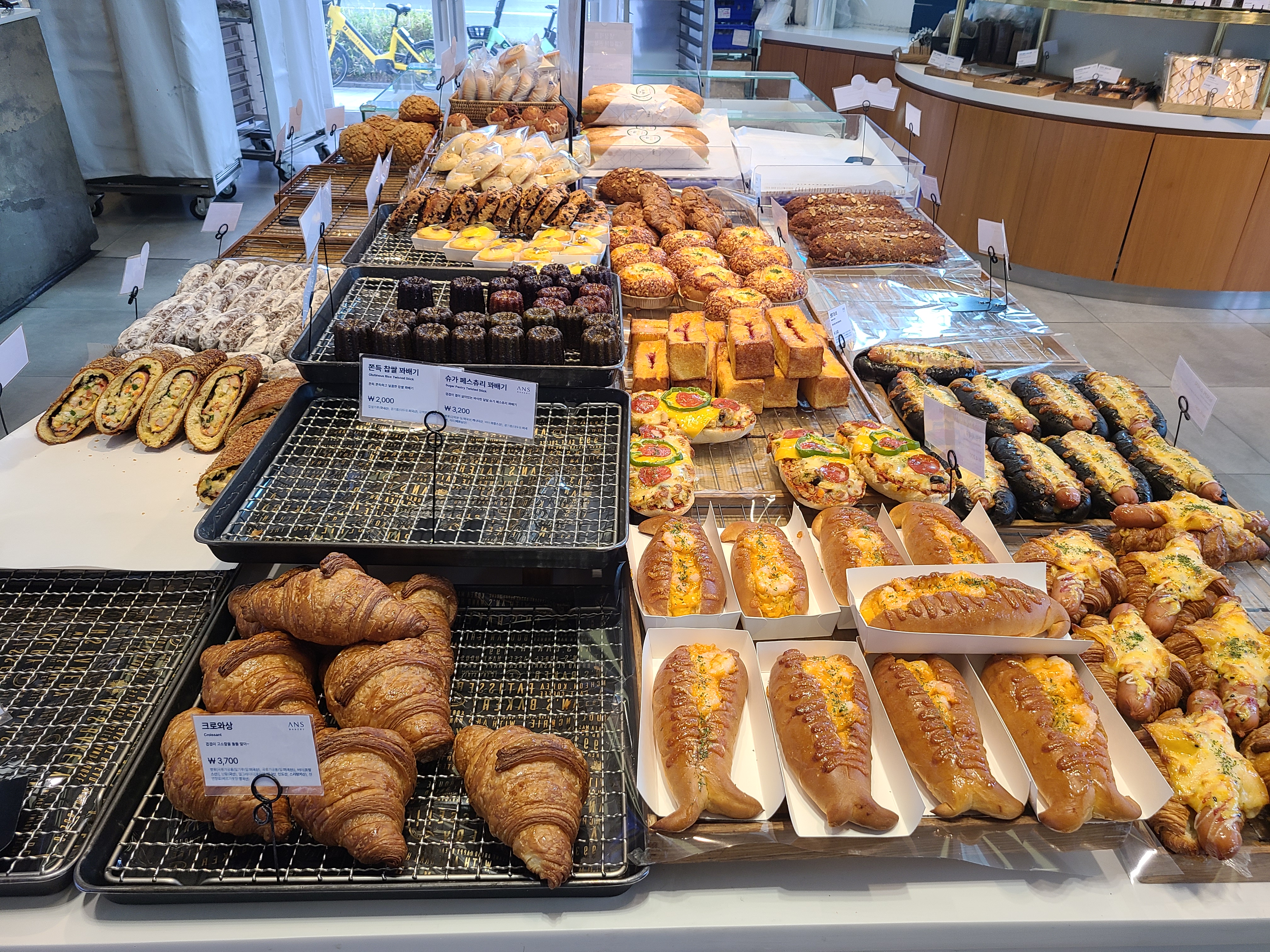 다양한 종류의 빵이 있었습니다. 어디 가나 늘 있는 소금빵부터 도넛, 바케트까지..